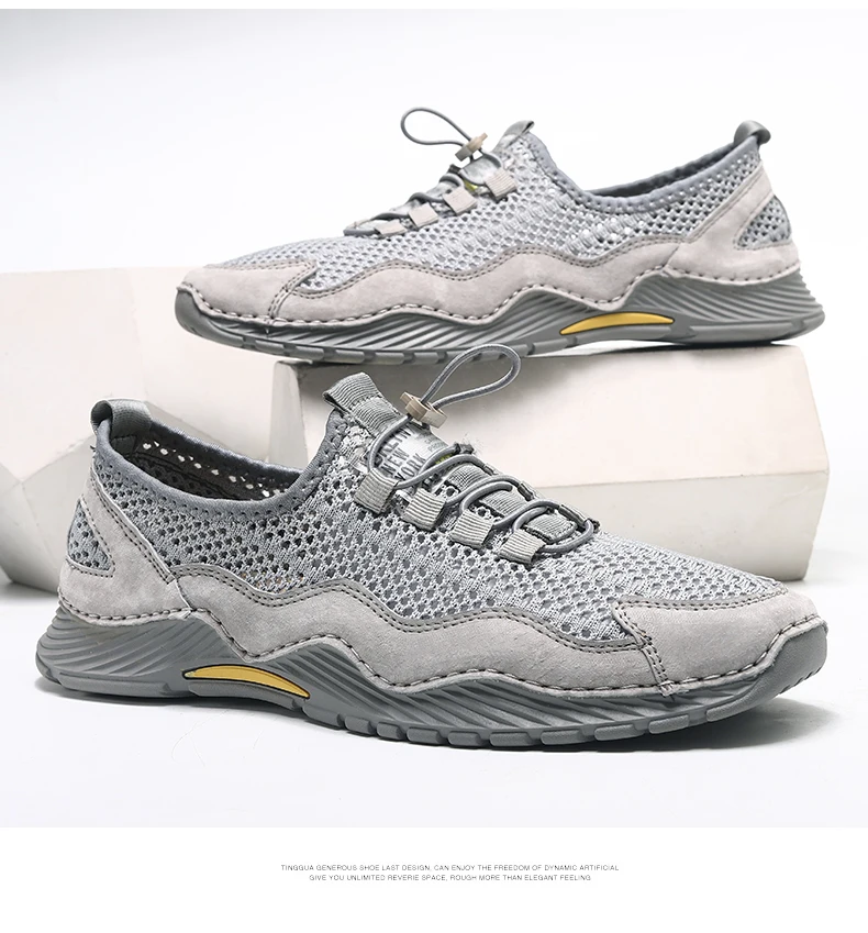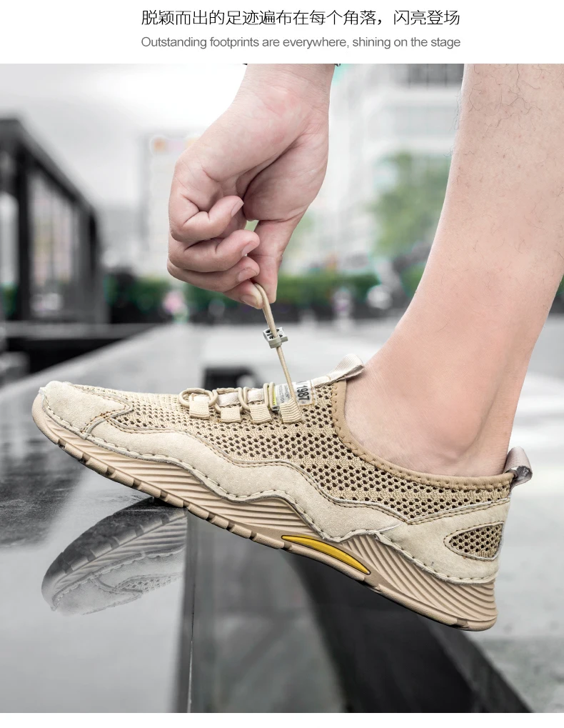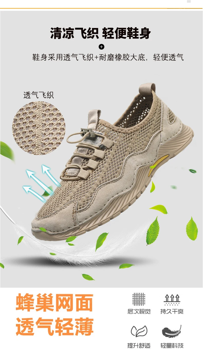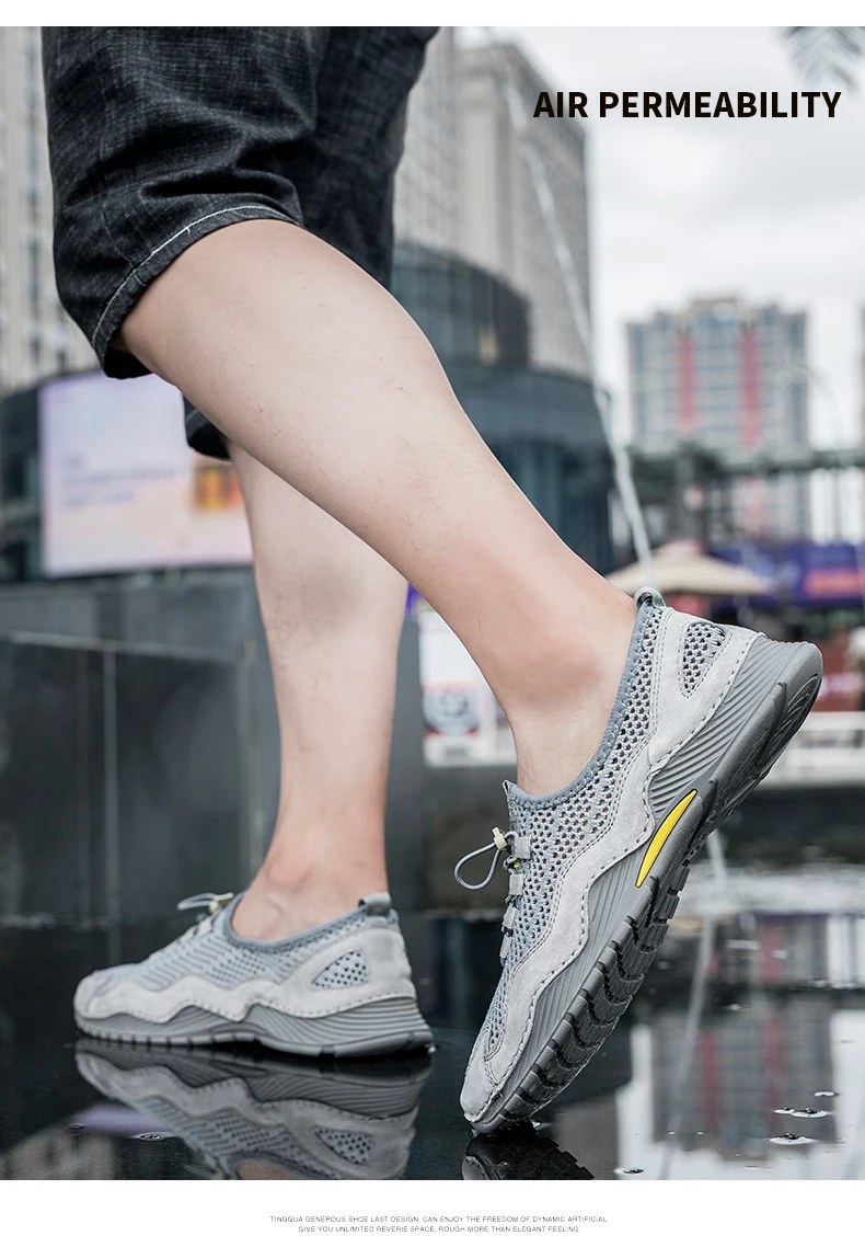 Мужские дышащие туфли без шнурков, дышащие кожаные сандалии с перфорацией, для спорта и отдыха, лето 2021