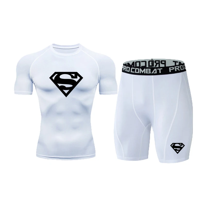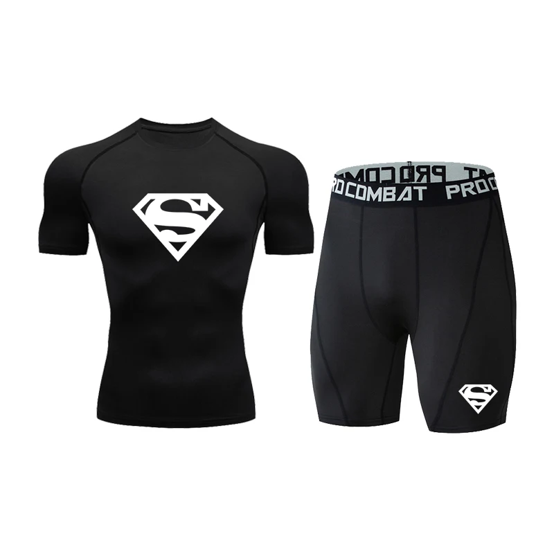 Мужская футболка, боксерский спортивный костюм, мужская спортивная футболка Rashguard для спортзала, бокса, джиу джитсу, кикбоксинга, черные шорты, футболка для фитнеса, 2 шт.комплект