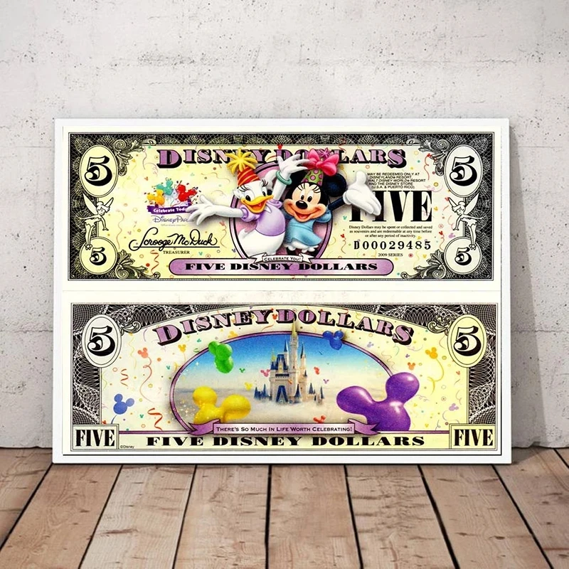 Холщовый постер с мультяшным Микки и Минни Дисней, уникальный Настенный декор, денежный пресс, 5 долларов, Билл, акварельная картина для гостиной