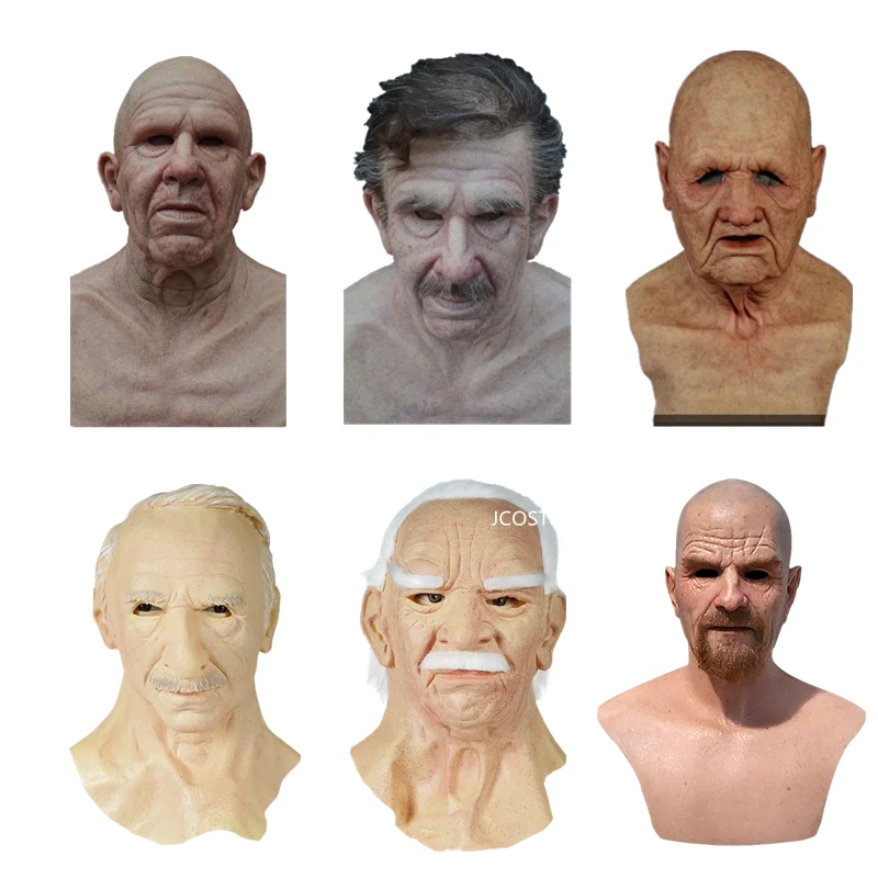 Страшная маска для стариков Косплей Хэллоуин полноголовая латексная...