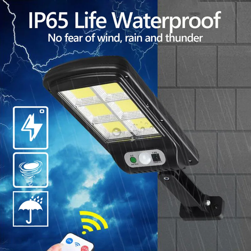 Название продукта: 120COB светодиодный настенный светильник на солнечной батарее Материал: АБС-пластик-защита от падения, защита от солнца Светодиоды: 48COB/120COB Вес: маленький 48COB-250g; Большой 120COB-440g Панели солнечных батарей: 5,5 W/2,5 W Аккумулятор: встроенный литиевый аккумулятор 3000 мАч Датчик движения: Да Пульт дистанционного управления: Да (за исключением типа 48COB) Водонепроницаемый: IP65 водонепроницаемый Применение: для палубы, забора, патио, передней двери, желоба, двора, сарая, дорожки, бассейна, гаража