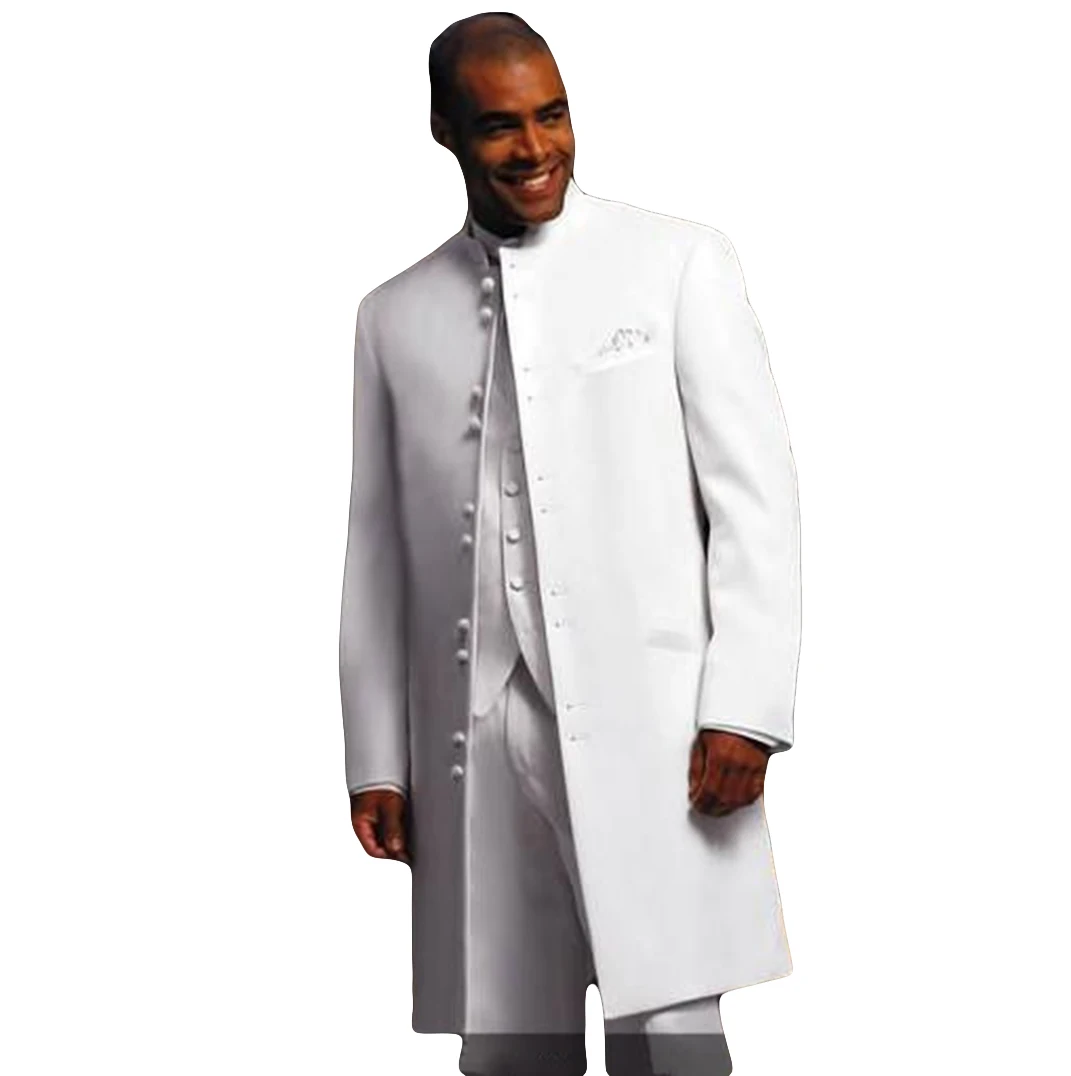 Мужской костюм, длинное пальто, белые смокинги для жениха, блейзер для шафера, мужские деловые костюмы на выпускной, 3 предмета (пиджак + брюки + жилет + галстук), Terno Masculino