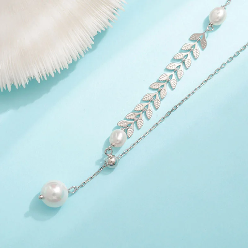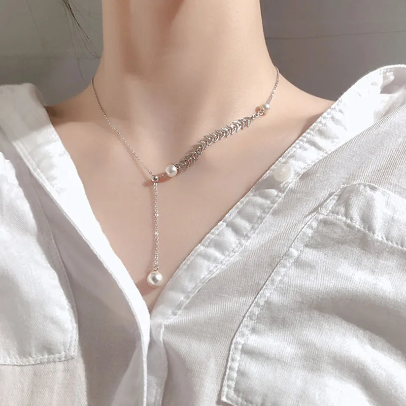 Ливи серебро Цвет изделия листьев жемчужное ожерелье в Корейском ст...