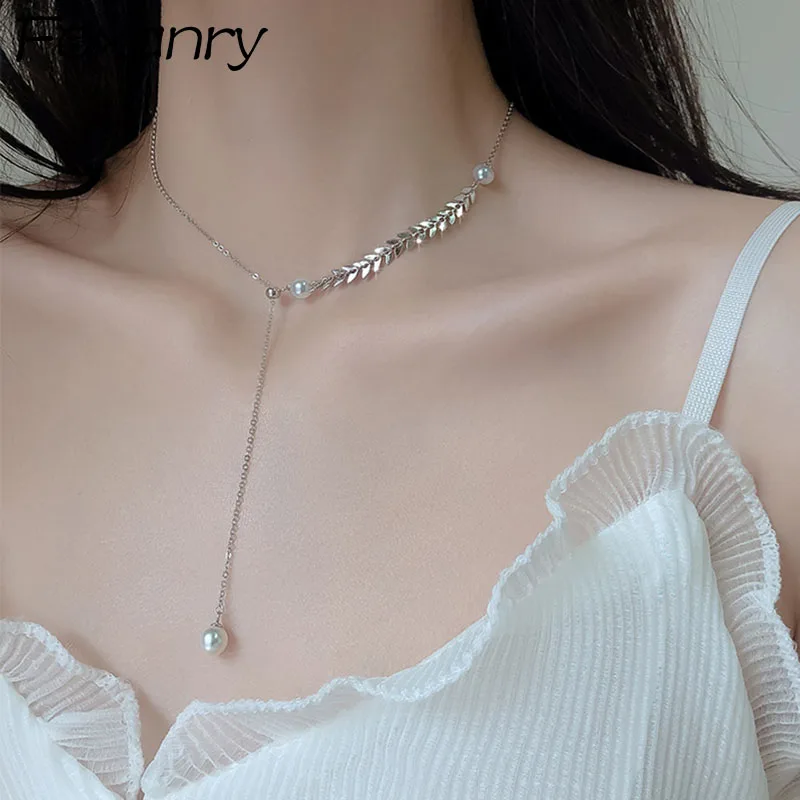 Ожерелье Foxanry с цепочкой до ключицы, 925, модные элегантные жемчужные серьги пшеницы, вечерние хрома, ювелирные изделия на день рождения, оптовая продажа