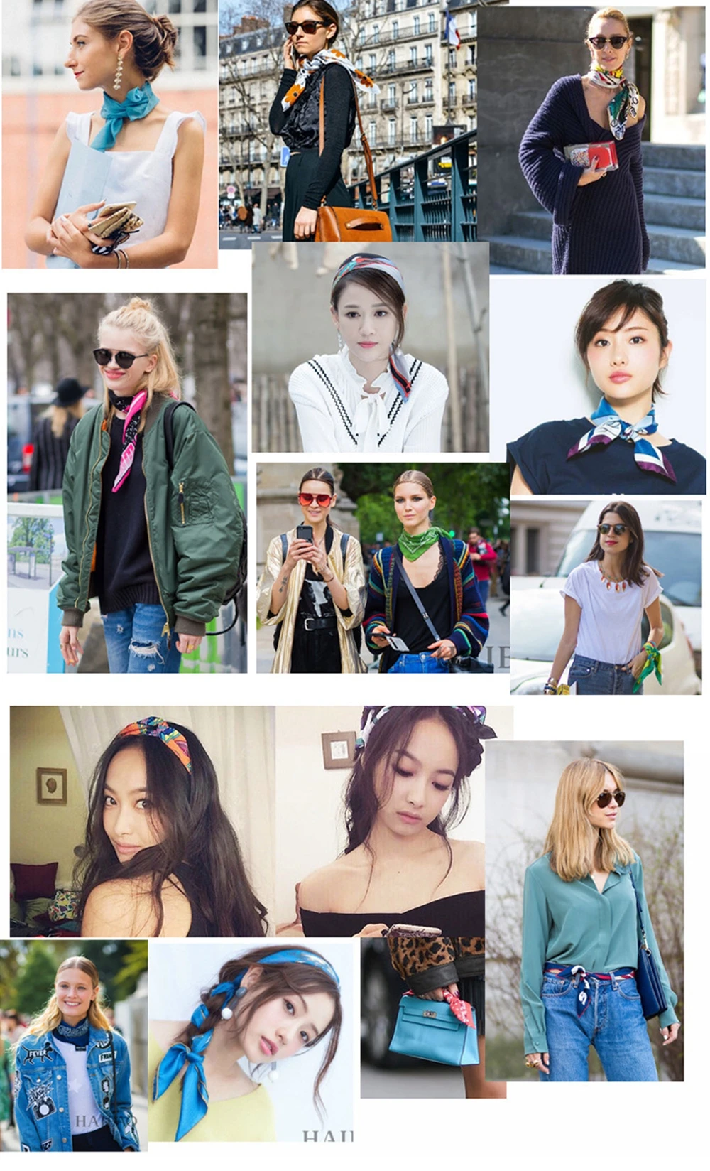 2021 квадратный шелковый шарф женский модный принт маленькие шейные шарфы Офисная Женская резинка для волос платок для рук Женская Бандана шаль