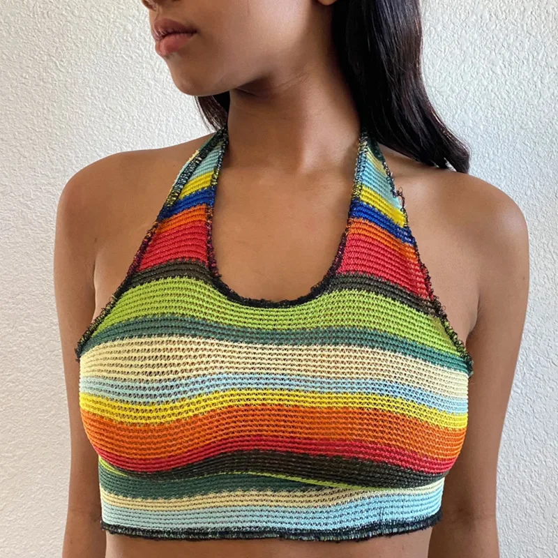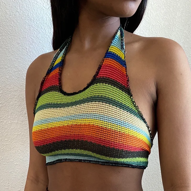 Женский трикотажный топ в полоску y2k, летний базовый топ без рукавов, Женский корсет в стиле ретро, 2021