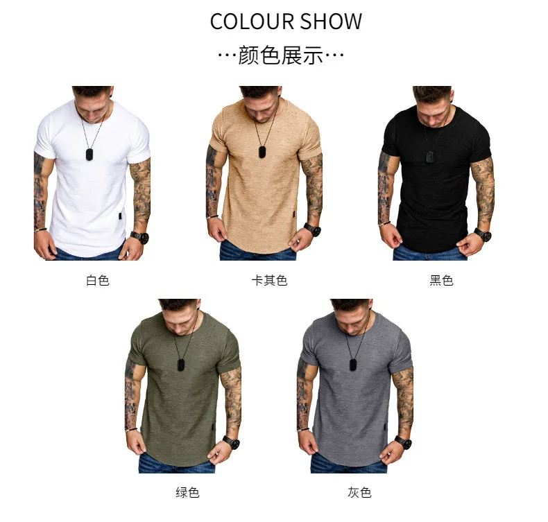 2020 Летняя мужская однотонная летняя футболка, круглый вырез, коро...