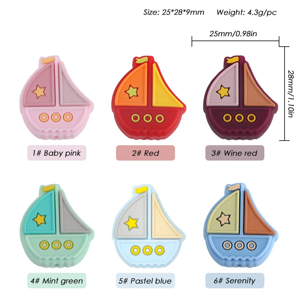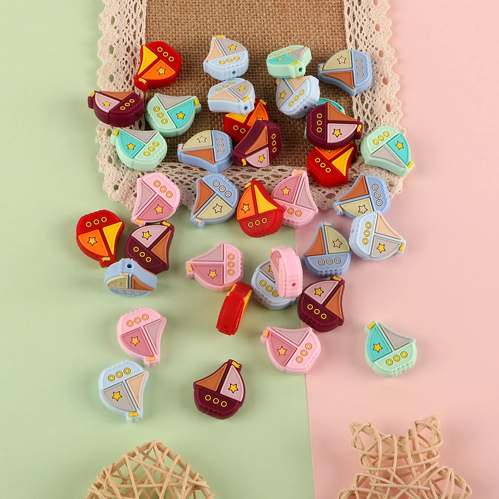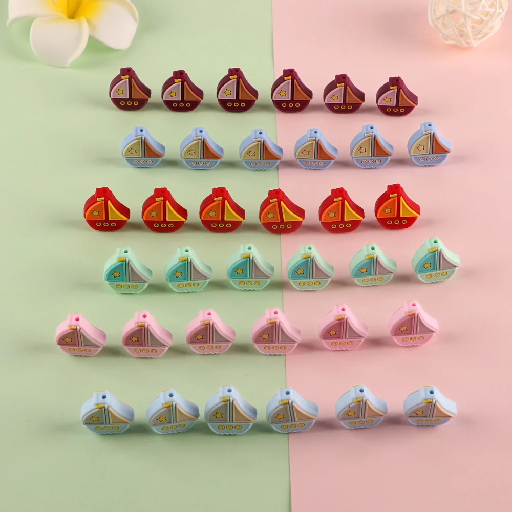 Парусник, 10 шт., форма парусника, силиконовые бусины, детский молар, прорезыватель, бусина сделай сам, цепочка для пустышки, ювелирные изделия, аксессуары