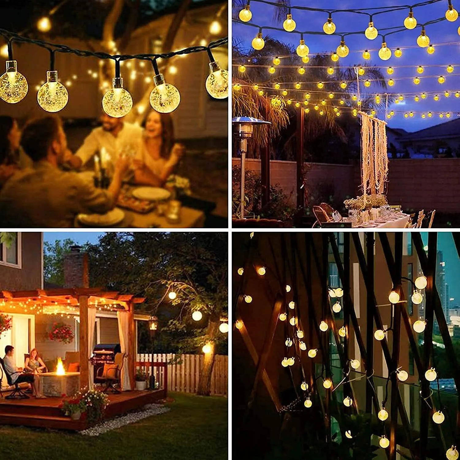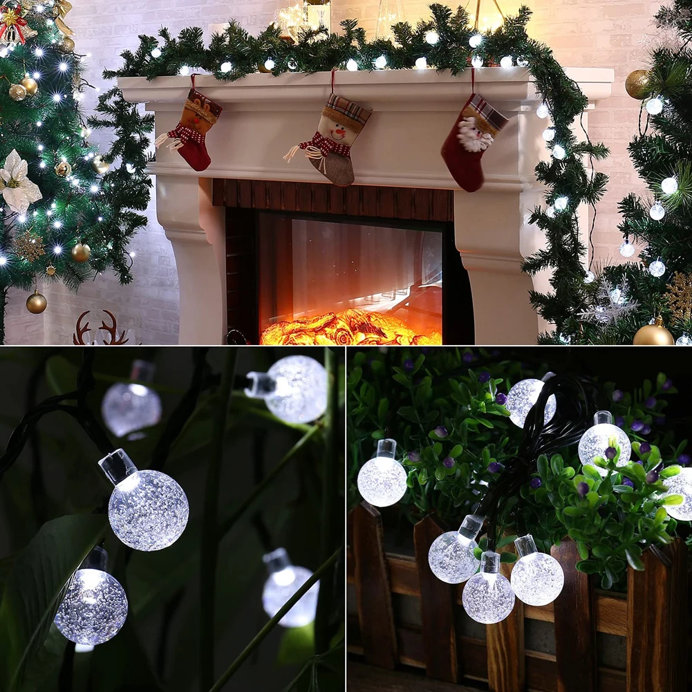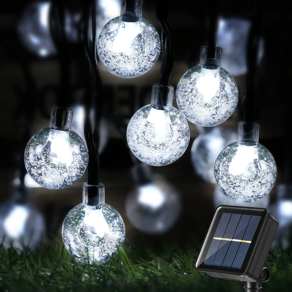 Светодиодная уличная гирлянда с лампочками в форме хрустального шара, 2050 уличный шнурок с лампочками, с питанием от солнечной батареи для Рождественского украшения сада, гирлянды на солнечной энергии светодиодный, 5 м, 10 м
