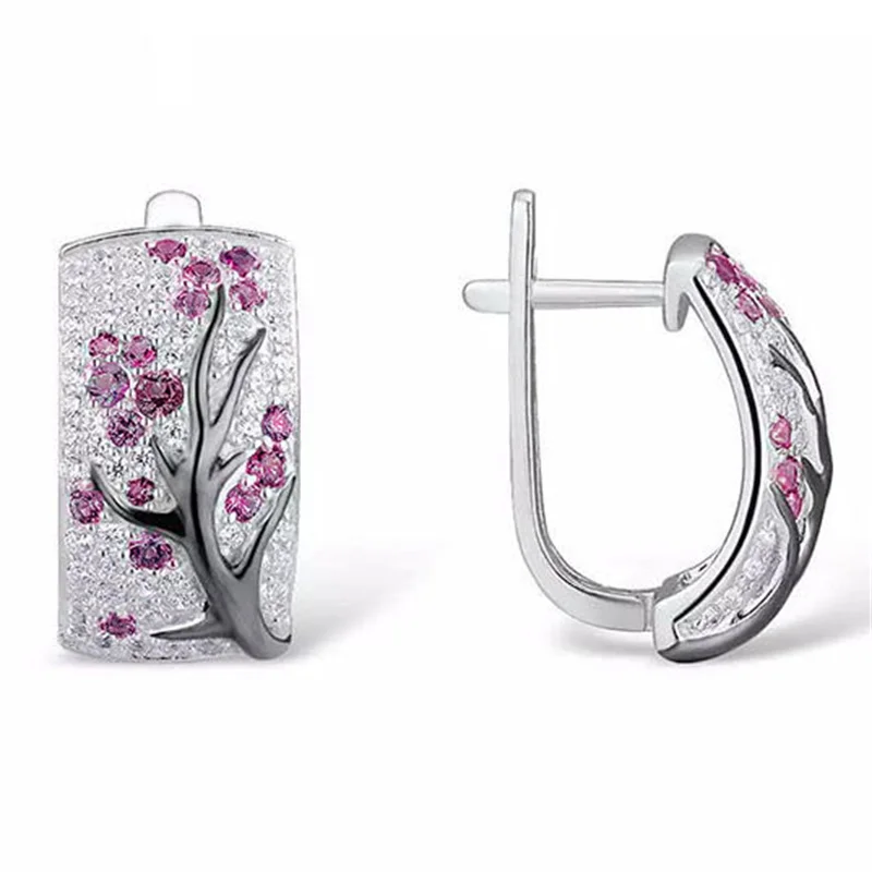 Этнические розовые зимние серьги-клипсы с цветком сливы для женщин ...