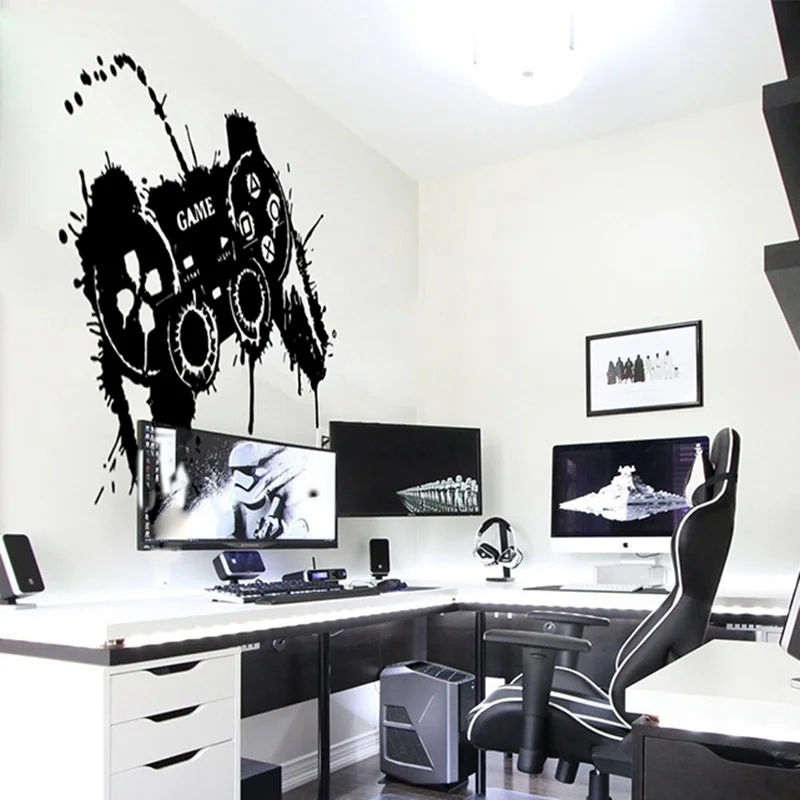 Большой игровой контроллер Splat, цветной джойстик, наклейка на стену, игровая комната, граффити, Xbox Ps, игровая зона, наклейка на стену, виниловая детская комната