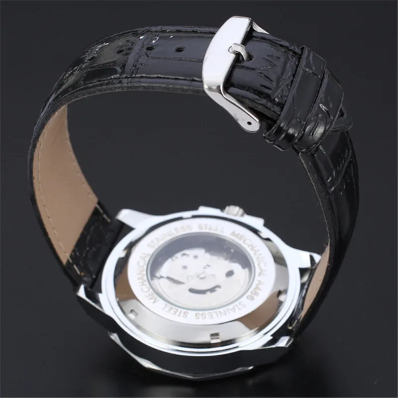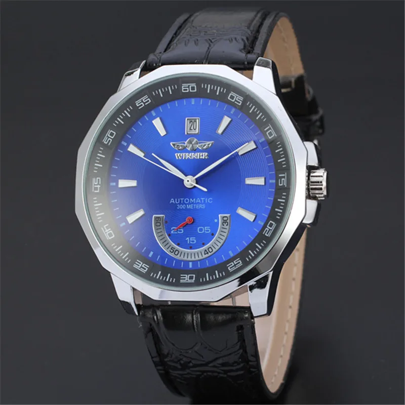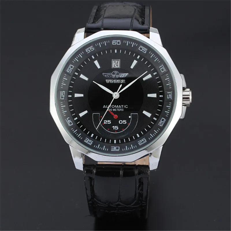 Часы наручные Winner Мужские механические с автоподзаводом, брендовые модные повседневные, с кожаным ремешком, с календарем