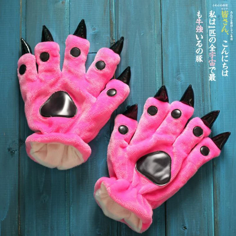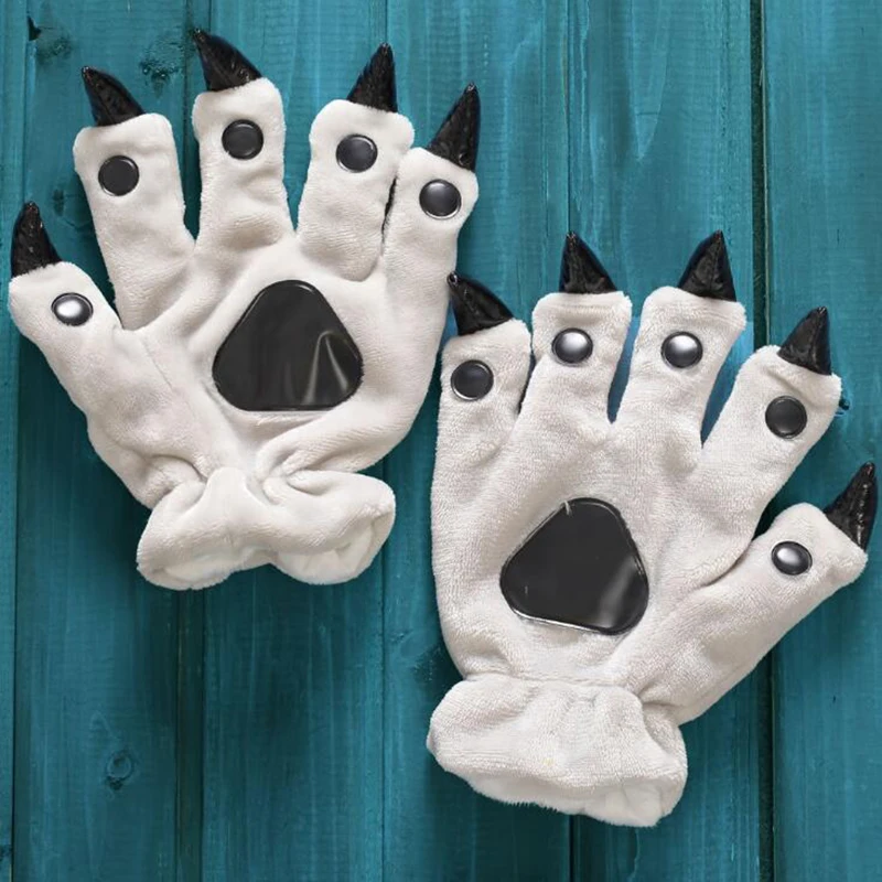 Зимние теплые перчатки в виде лап животных, милые искусственные мяг...