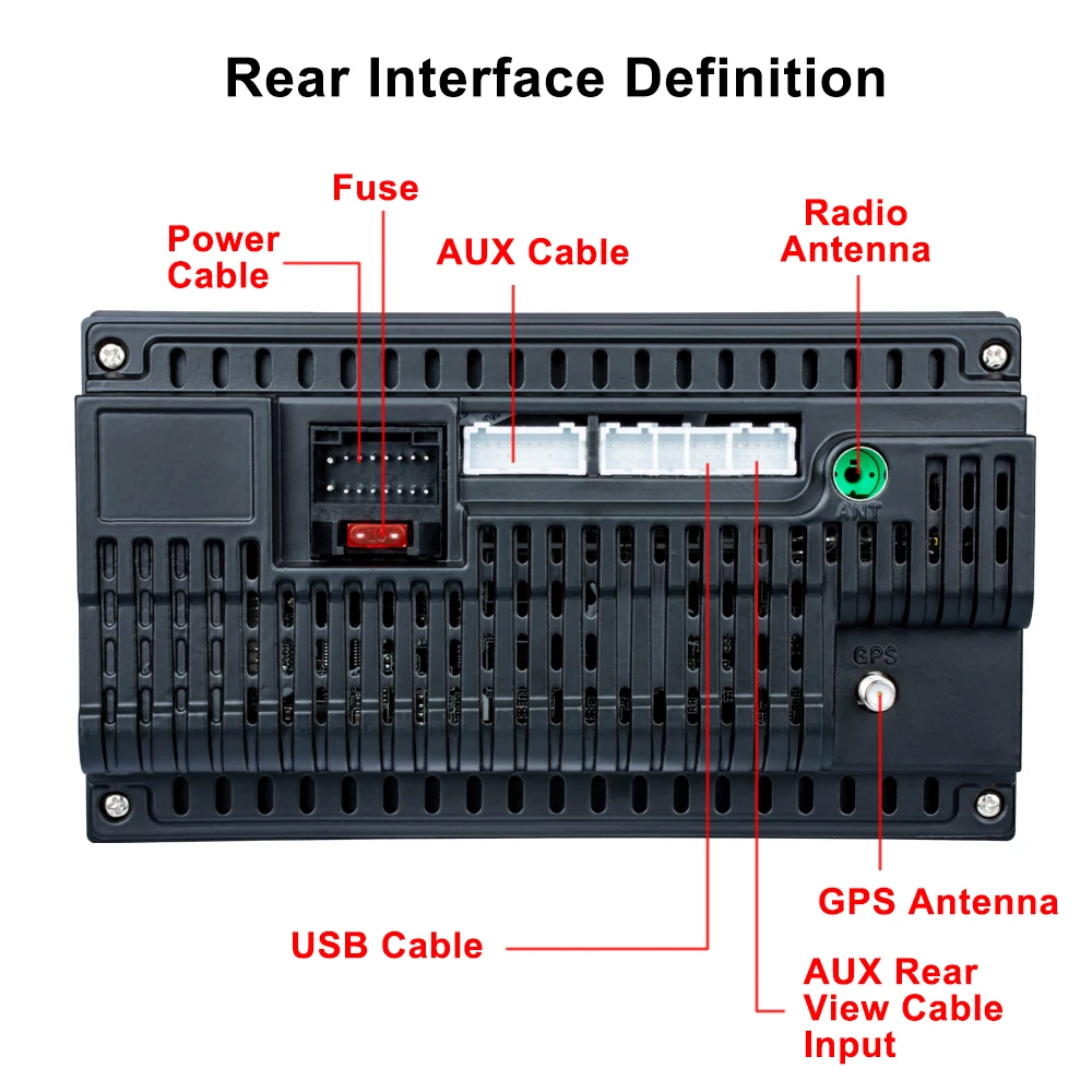 6. Этот вход Автоматически Заряжает заднюю камеру, когда транспортное средство переключается в обратную сторону и отображает изображение на экране устройства. Задняя камера продается отдельно.