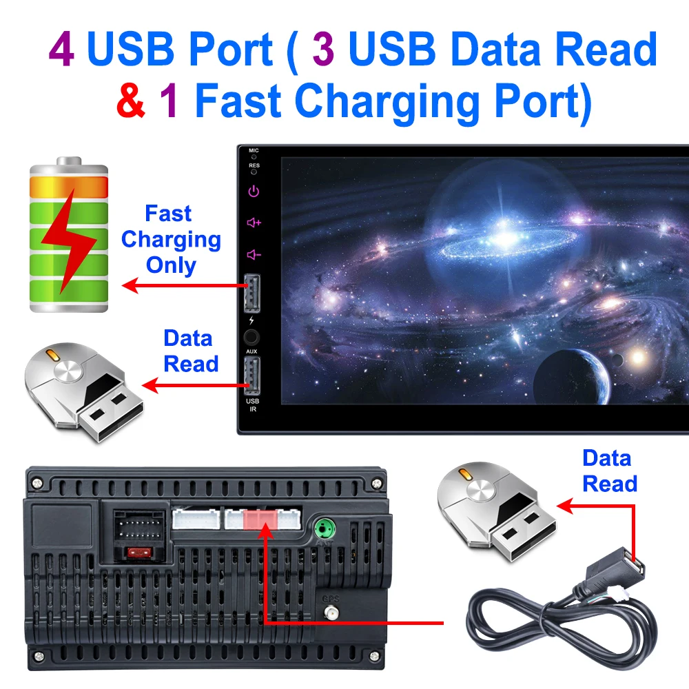 12. Поддержка 4 usb-порта, два usb-порта на передней части машины и два usb-порта на задней части машины.