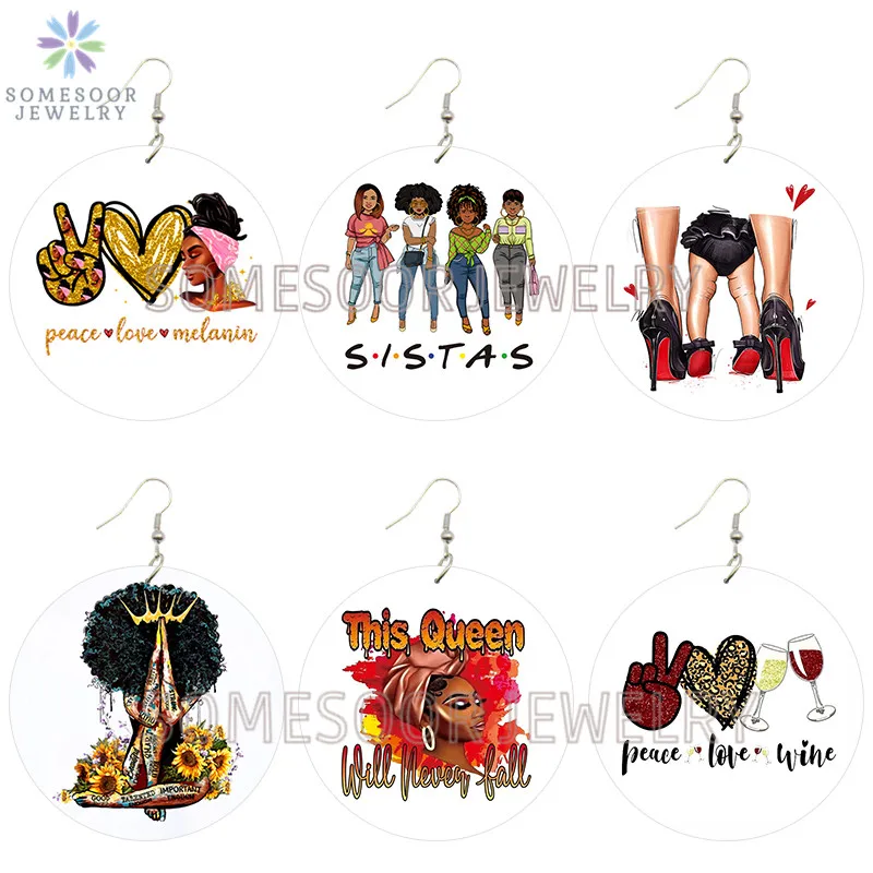 SOMESOOR меланин поппин королева вьющиеся деревянные висячие серьги...