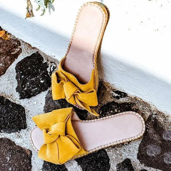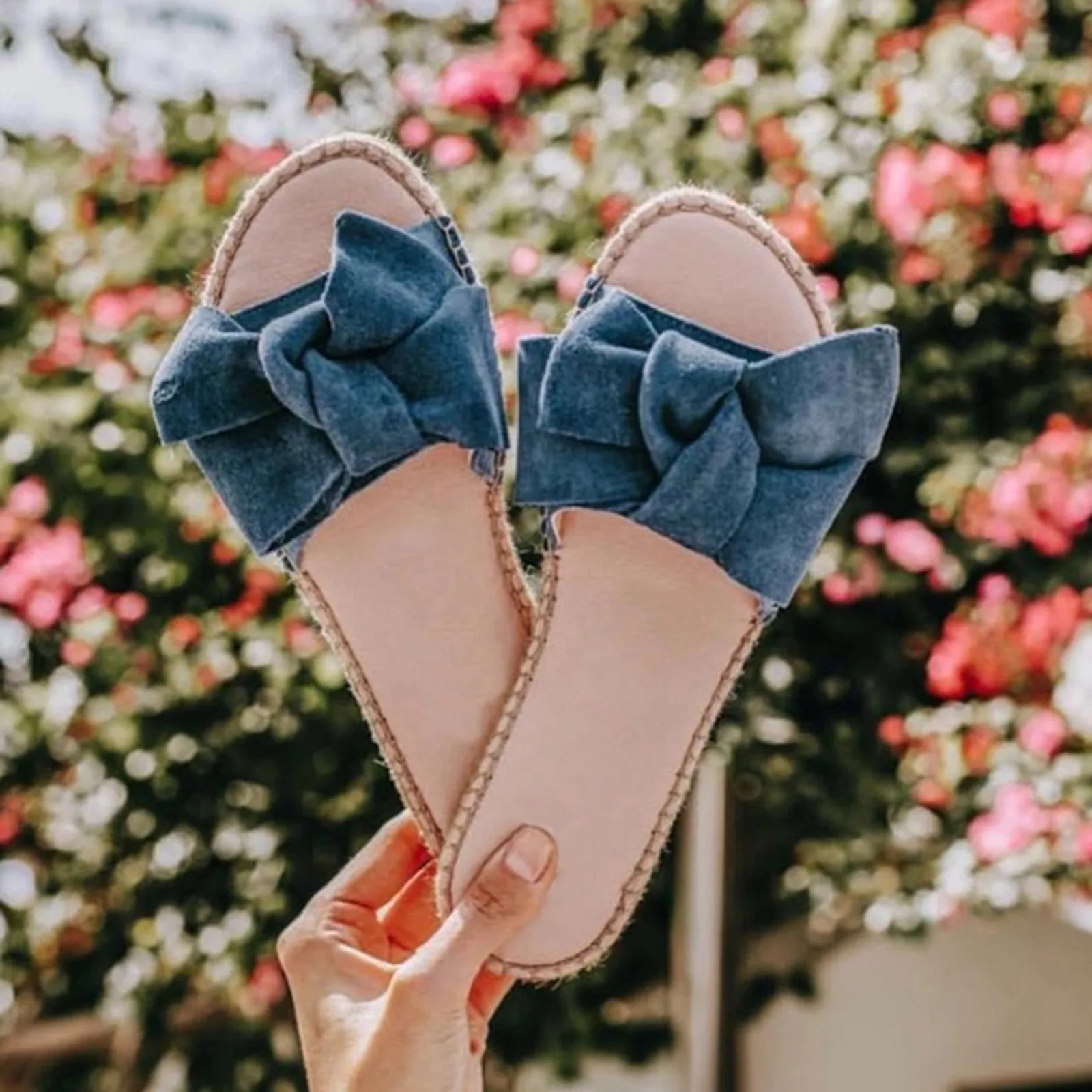Пляжные шлепанцы для женщин, повседневная прошитая обувь на плоской подошве, сандалии с бантом, удобные элегантные, лето
