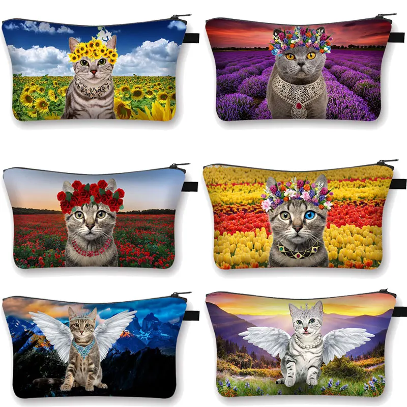 Женская косметичка с милым котом и животным принтом, дамская сумочк...
