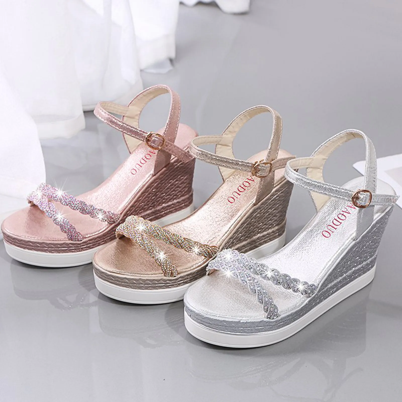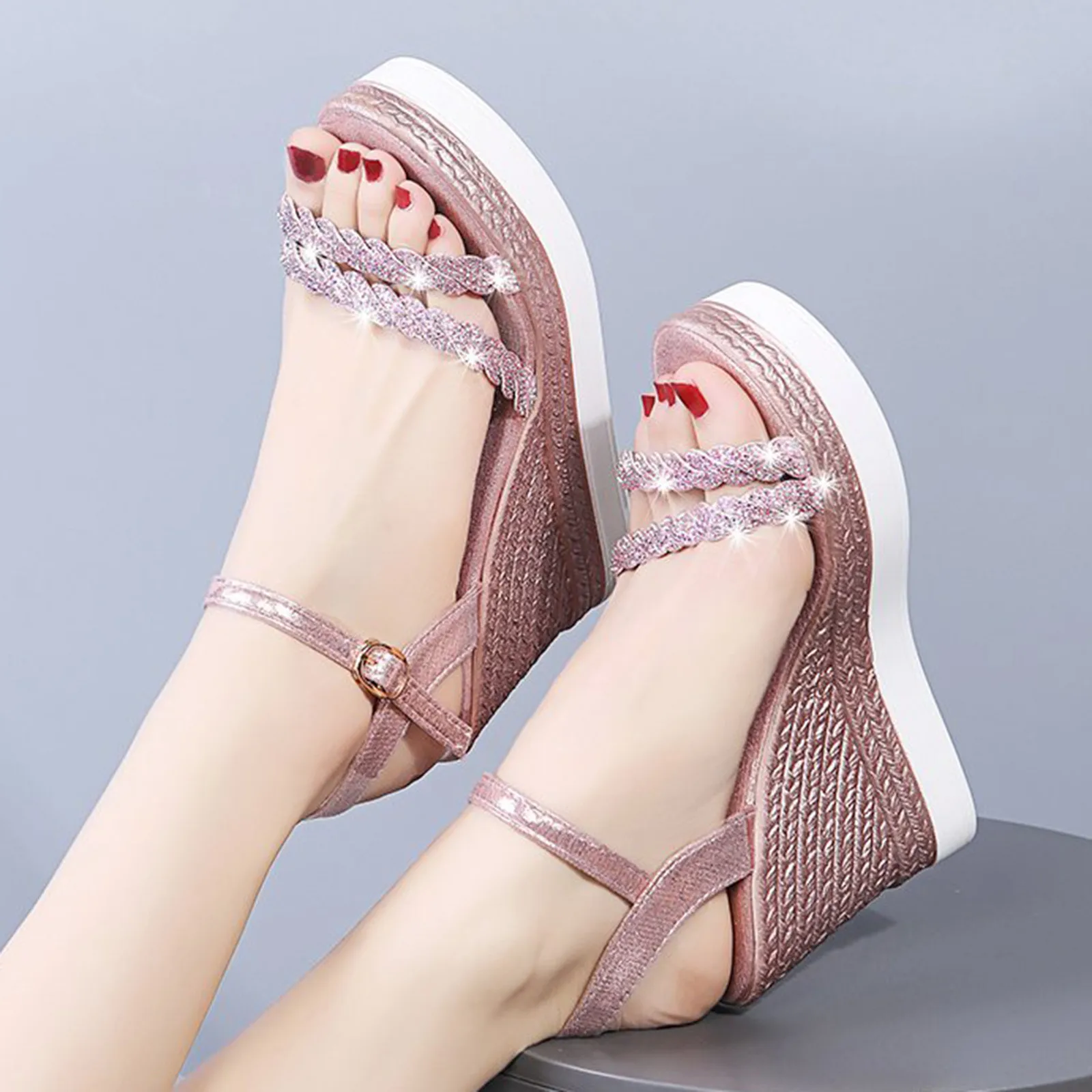Блестящие шлепанцы на платформе с блестками, женские шлепанцы на танкетке, летняя повседневная обувь на толстой подошве, серебристые сандалии