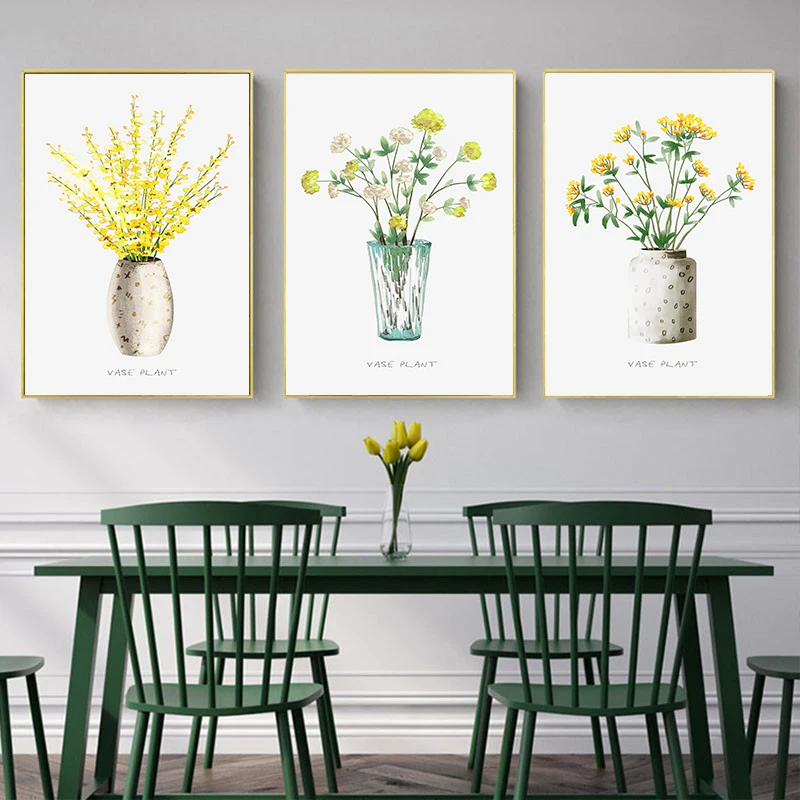 Настенные художественные плакаты в простом стиле с зелеными растениями, тропический желтый цветок, холст с рисунком, декоративные картины для декора гостиной