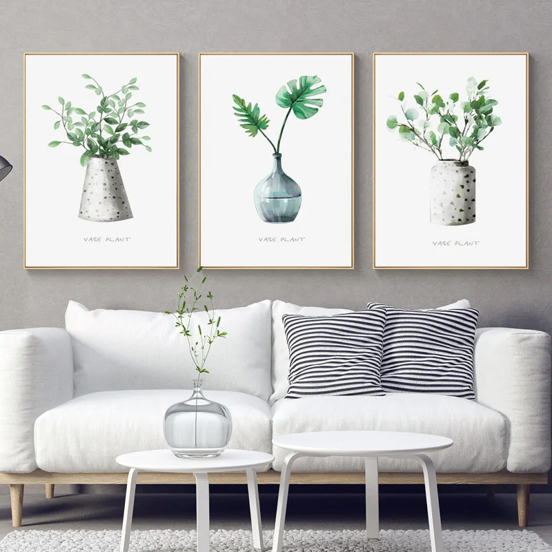Настенные картины в простом стиле с зелеными растениями, декоративн...