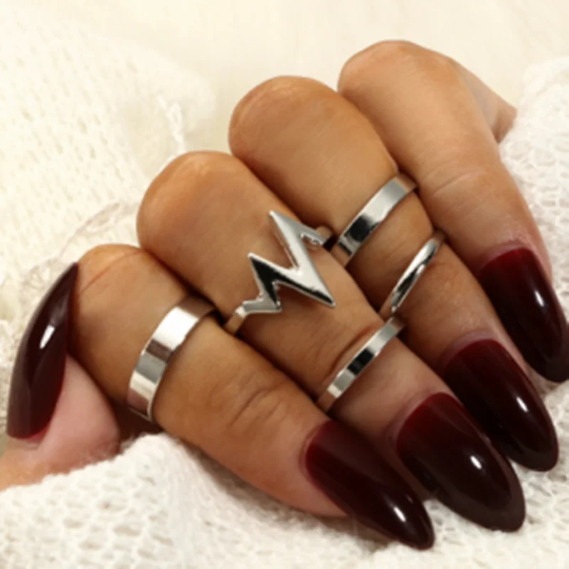 Набор колец в богемном стиле для женщин, серебристые кольца с молни...