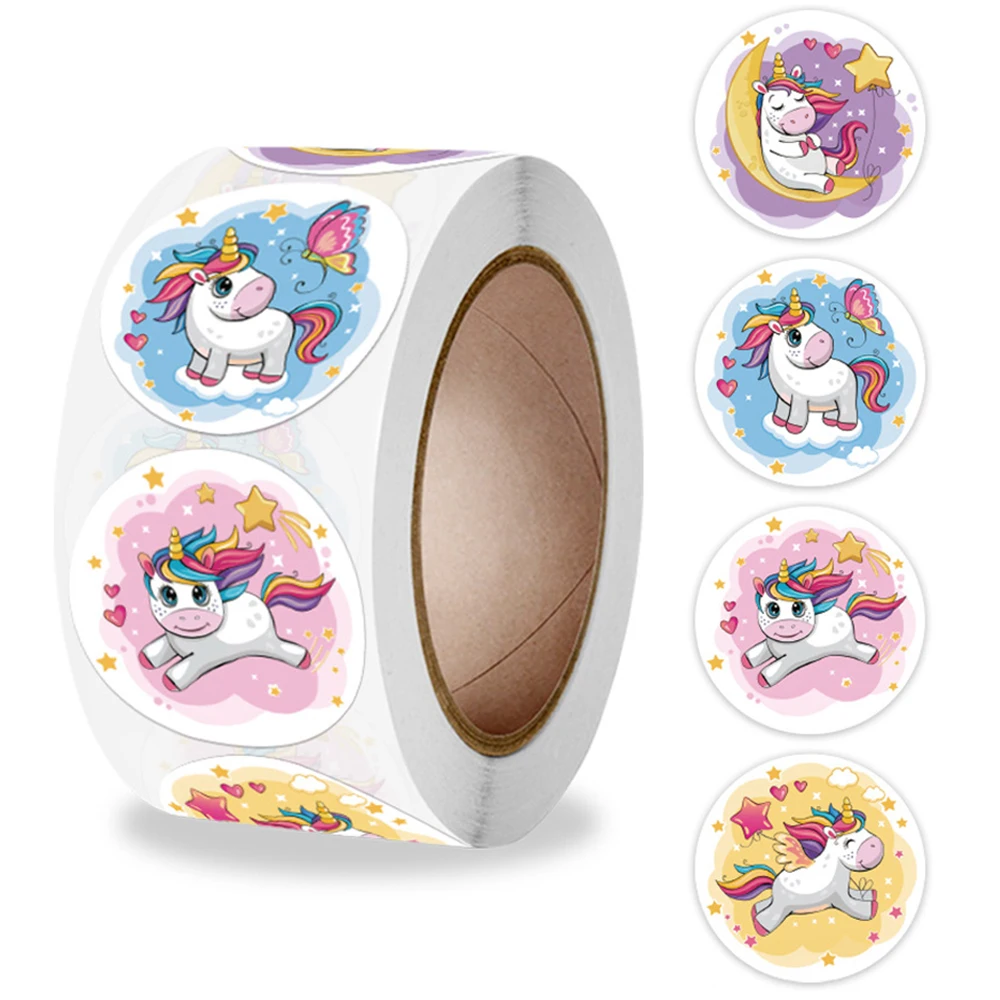 Наклейки в рулоне с милым розовым единорогом, мультяшными животными...
