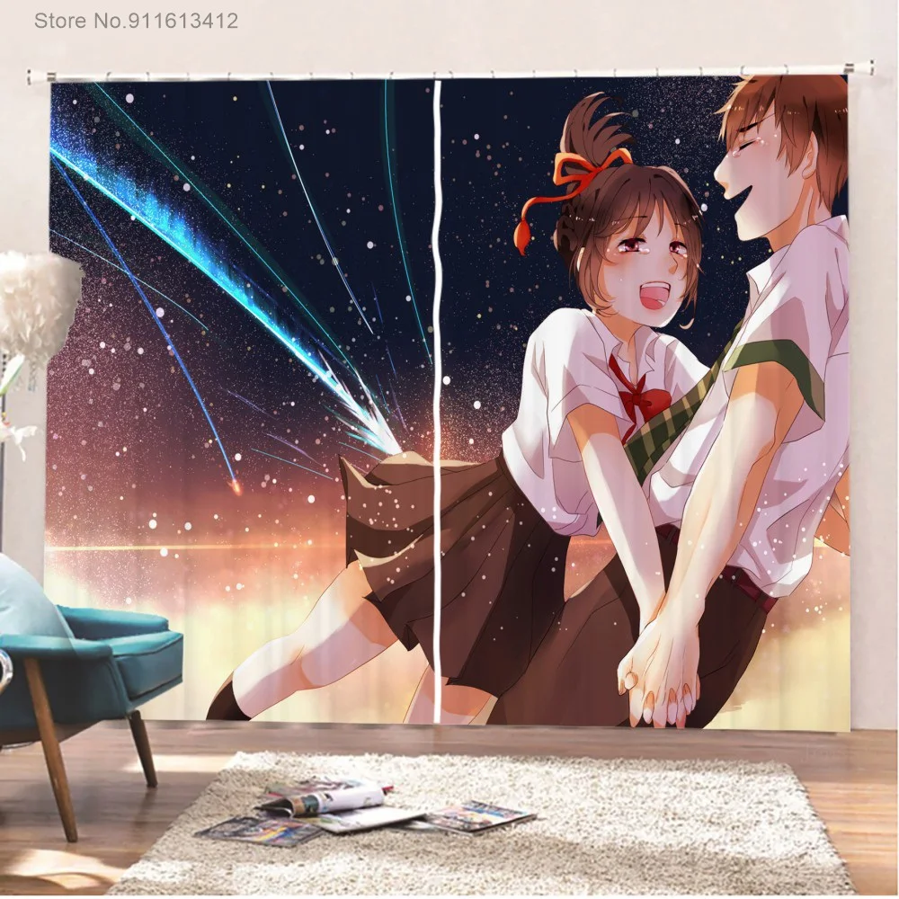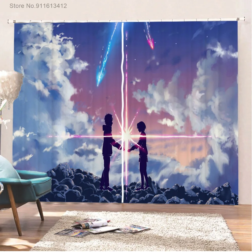 Модные японские аниме затемняющие шторы, 2 панели с вашим именем, занавески с 3D рисунком, Мультяшные оконные драпировки, домашний текстиль, оконные принадлежности