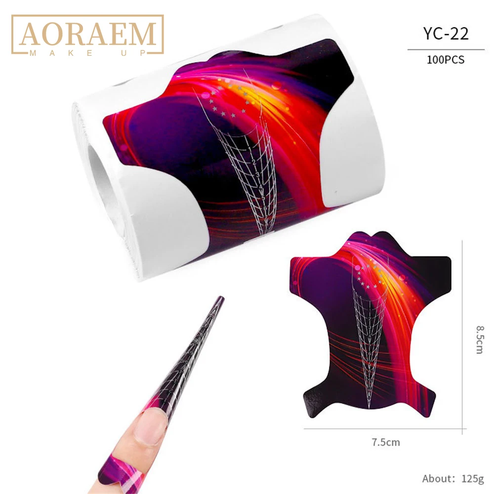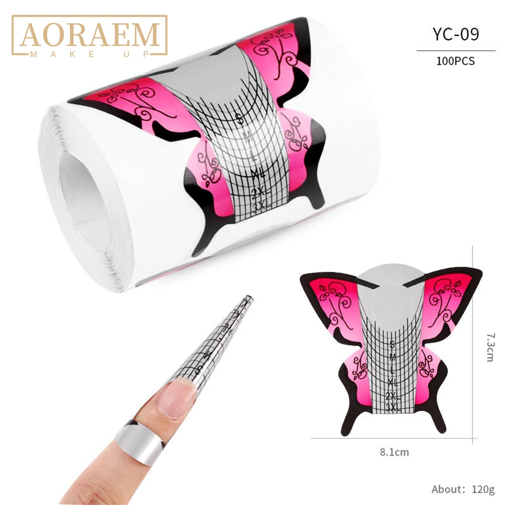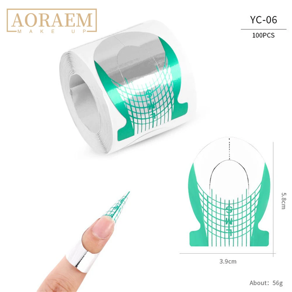100 шт., формы AORAEM для французского маникюра, Типсы для наращивания акрилового УФ-геля, двойная форма, руководство по искусству, верхняя форма для маникюра