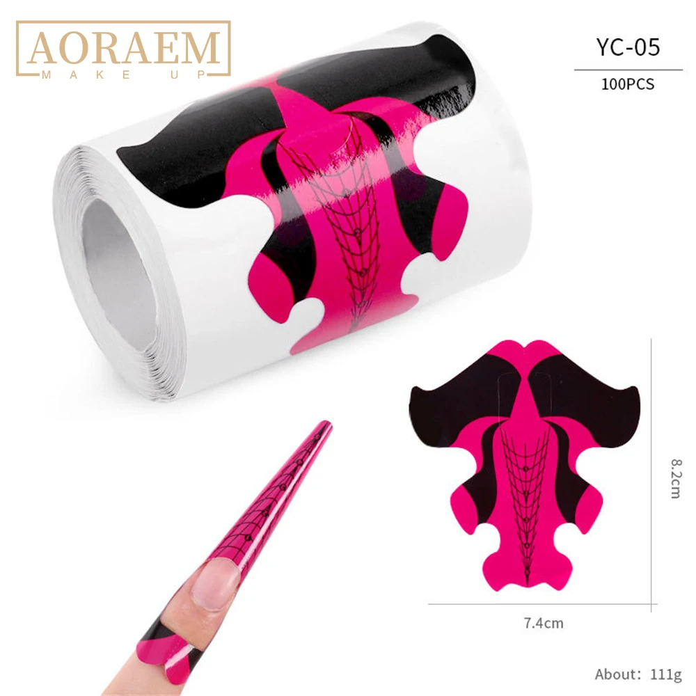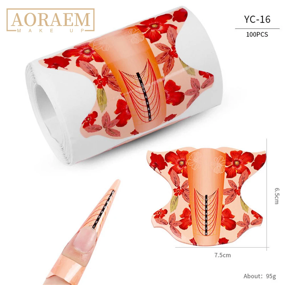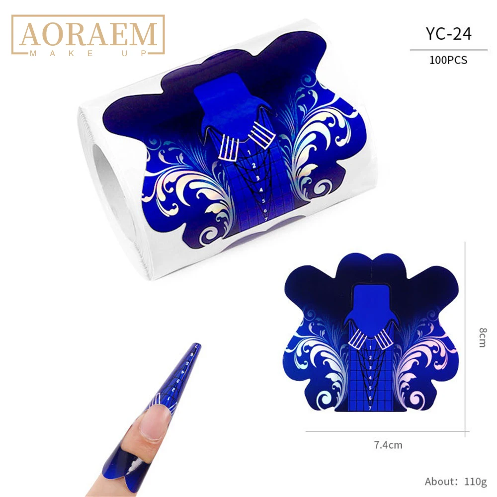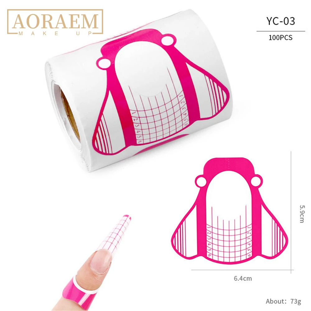 100 шт., формы AORAEM для французского маникюра, Типсы для наращивания акрилового УФ-геля, двойная форма, руководство по искусству, верхняя форма для маникюра