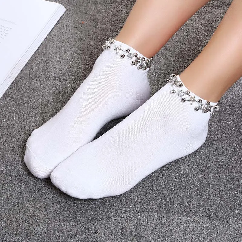 Ручной работы Япония жемчужные звездочки ажурные носки Для женщин CreativeCollege Стиль носки Harajuku выдалбливают