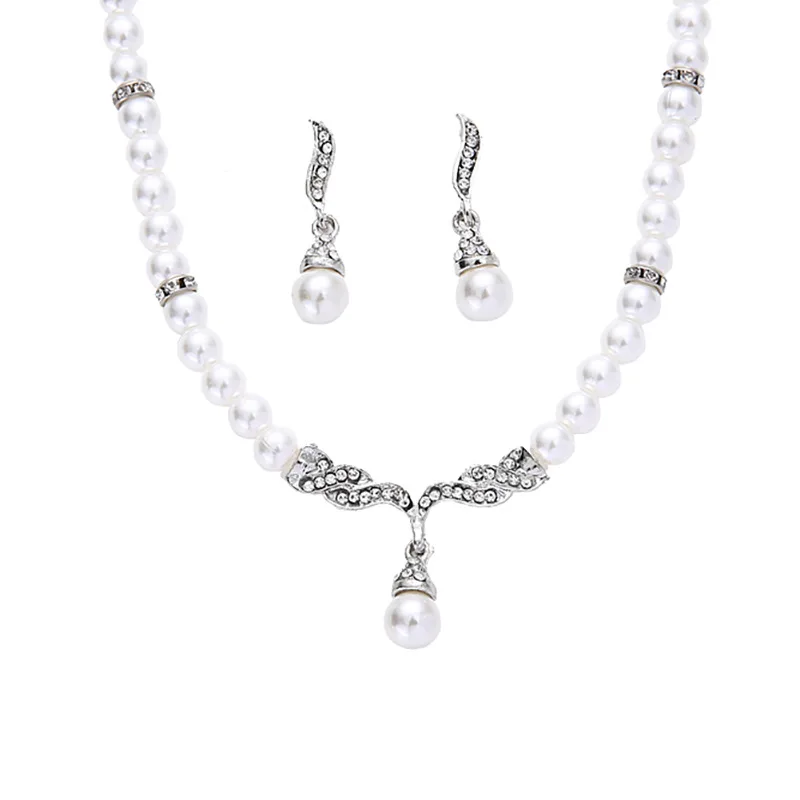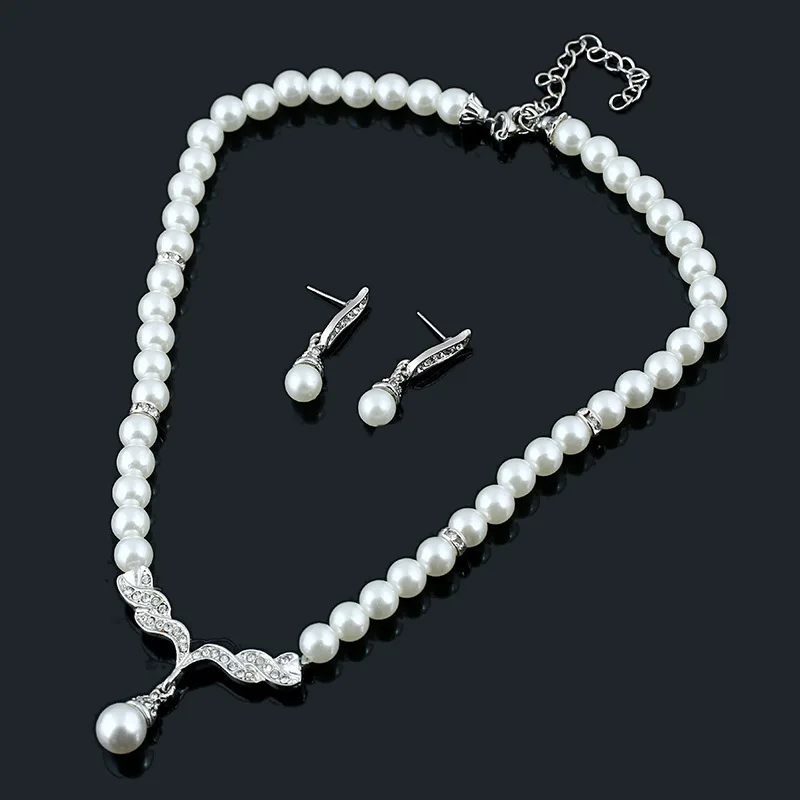 Серебряный позолоченный ожерельесерьги комплект ювелирных изделий Модные свадебные туфли с жемчугом, комплект из 2 предметов, микровставки из циркона женский модный комплект свадебные аксессуары
