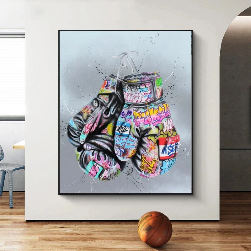 Боксерские перчатки в стиле граффити, Картина на холсте, искусство на стену для гостиной, домашний декор