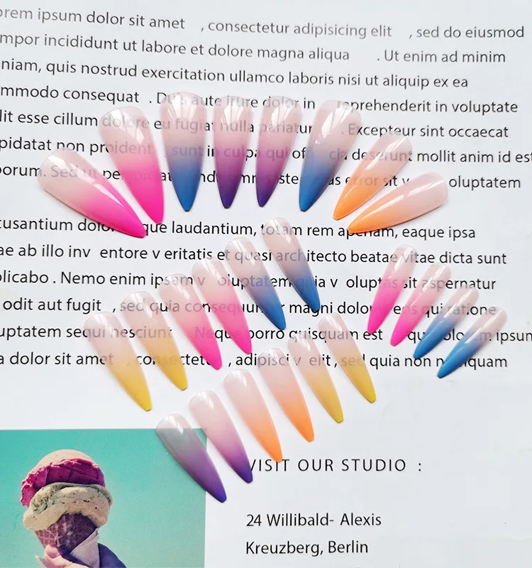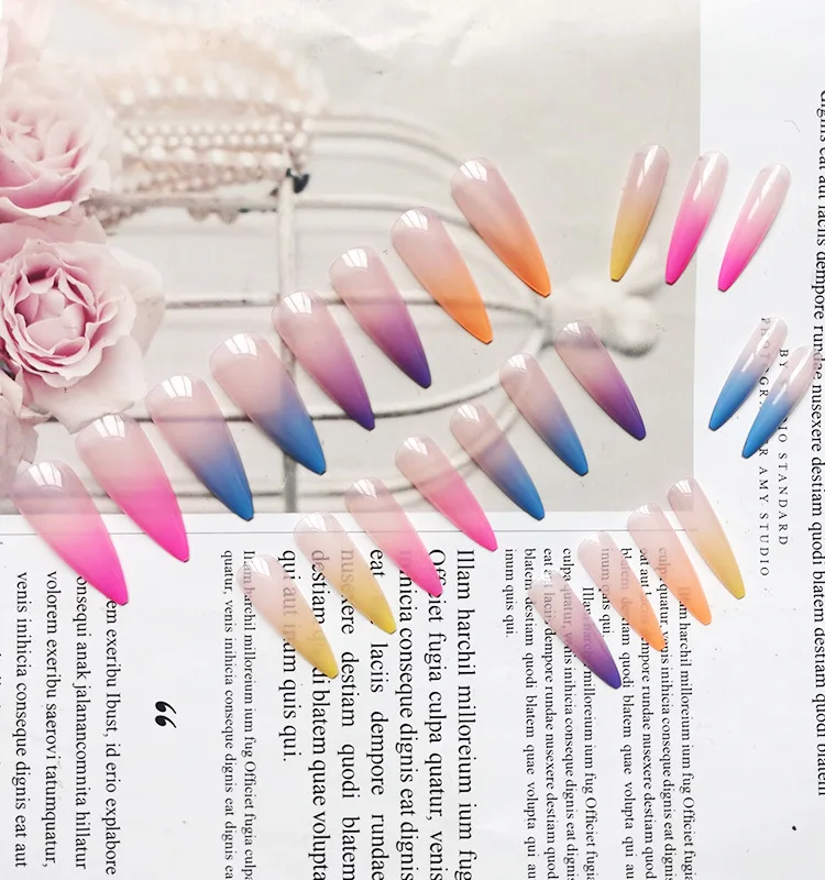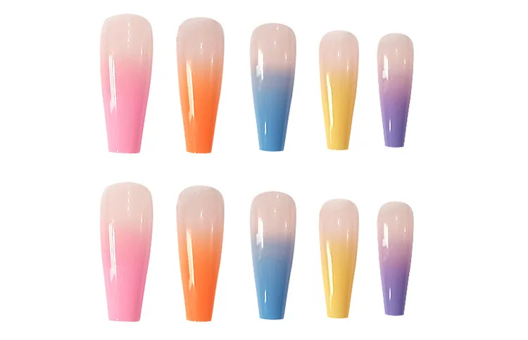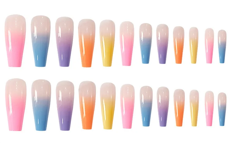 20 шт длинные балерины гроб для ногтей гроб накладные ногти градиентный цвет блестящие глянцевые полное покрытие искусственный кончик ногтя