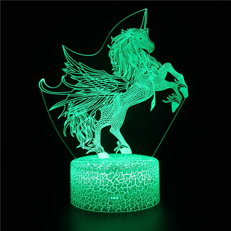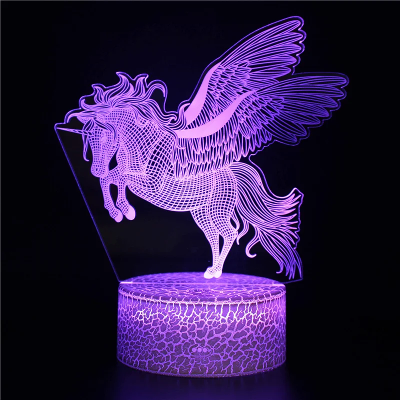 3D ночной Светильник в виде единорога для детей, USB-светильник, иллюзия лошади, меняющий цвет, Настольный светильник для взрослых, детской комнаты, Декор