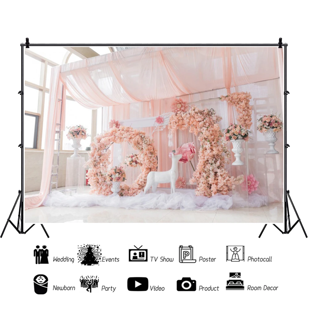 Laeacco День Рождения Вечеринка стена Розовая Занавеска цветок декор реальная сцена фотосессия фоны ребенок Индивидуальные фотографии фоны