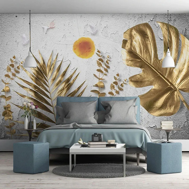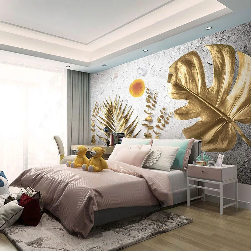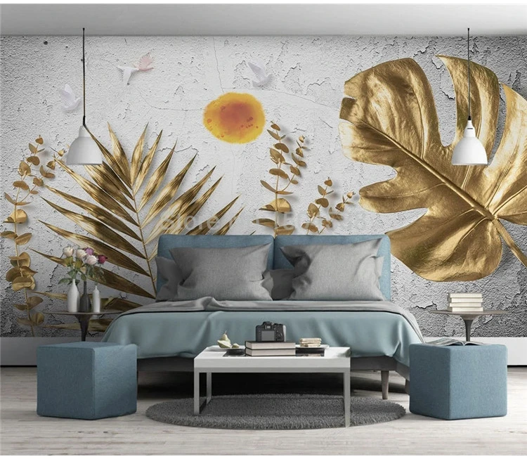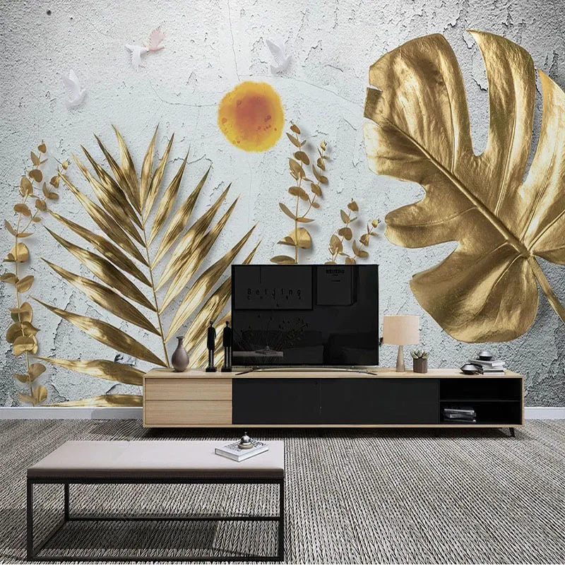 Пользовательские фото обои современные 3D стерео Золотой лист роспись Гостиная ТВ диван декоративная живопись фон стены Papel De Parede