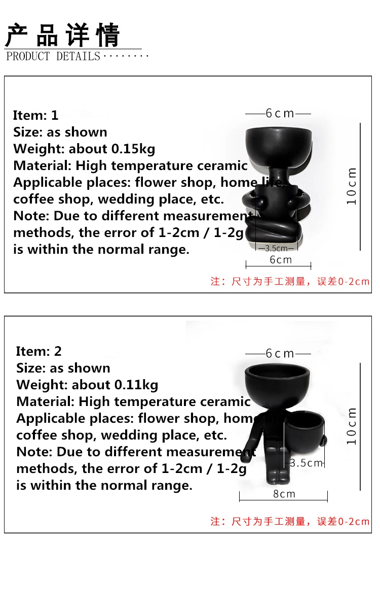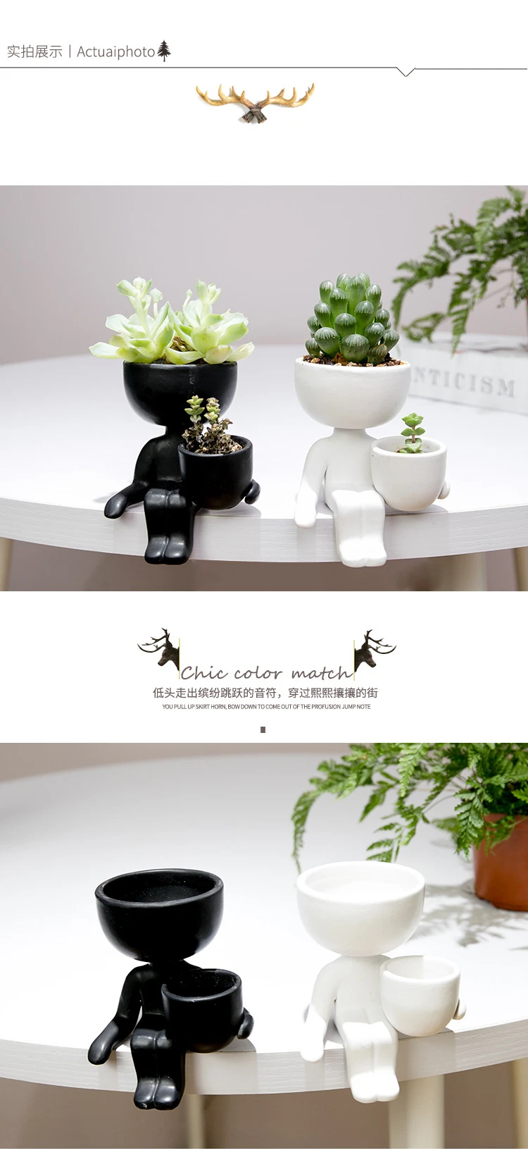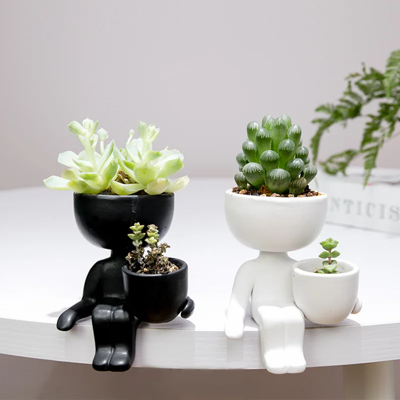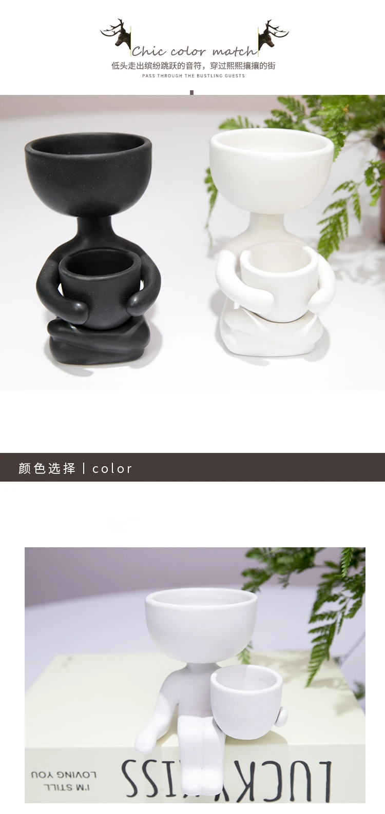 Керамическая ваза для суккулентов в форме человека, маленький комна...