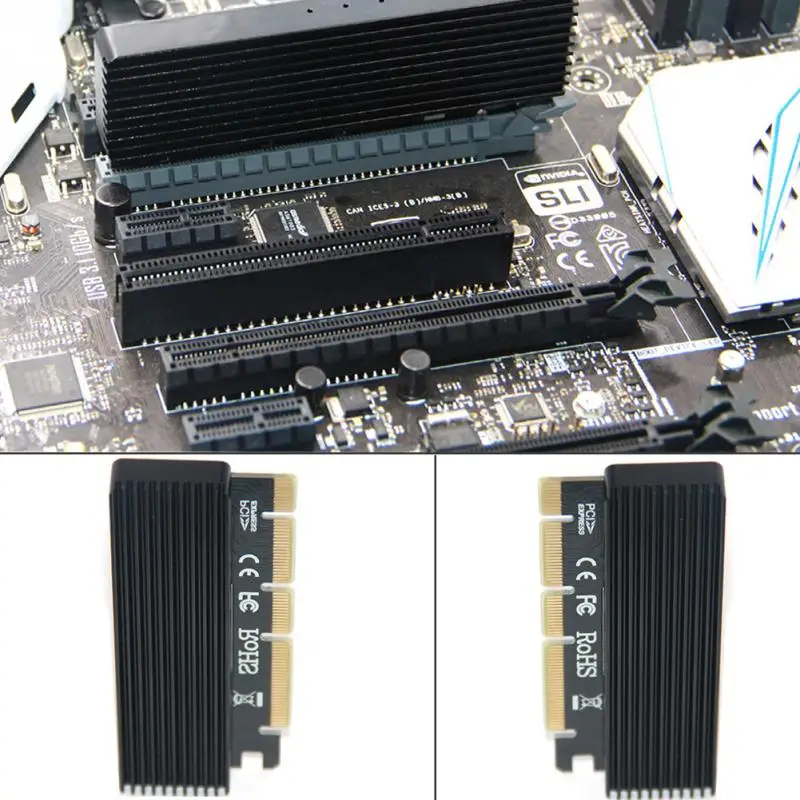 Новое поступление, корпус из алюминиевого сплава, светодиодная Плата расширения, компьютерный адаптер, интерфейс M.2 NVMe SSD для PCIE 3,0 X16