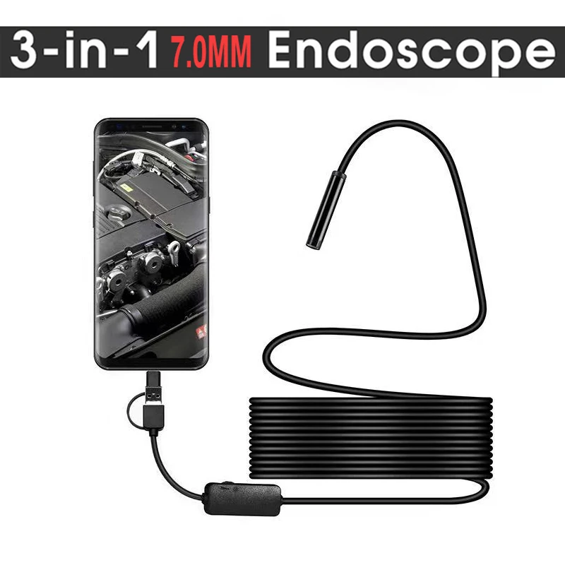 3-в-1 HD Android телефон компьютер эндоскопа 7 мм Авто Ремонт кондиционерная труба Micro Камера 1 м-10 м Портативный аксессуары