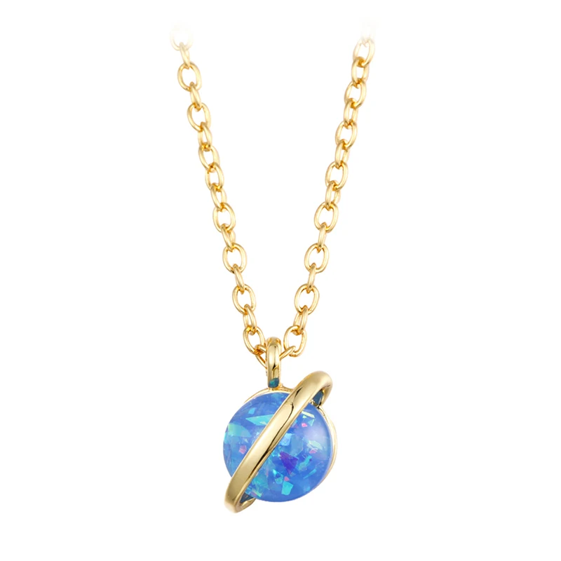 Ожерелье ISUEVA с подвеской в виде планеты, Вселенной, звездного неба, галактики, 18 карат золота, фэнтезийная туманность, круглое ожерелье с натуральным опалом для женщин