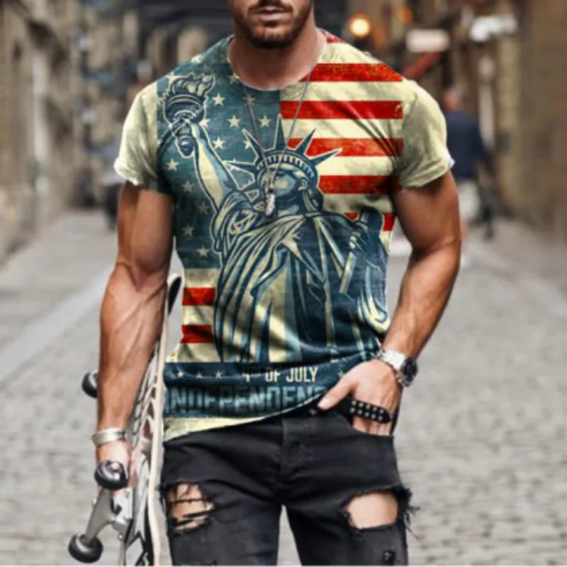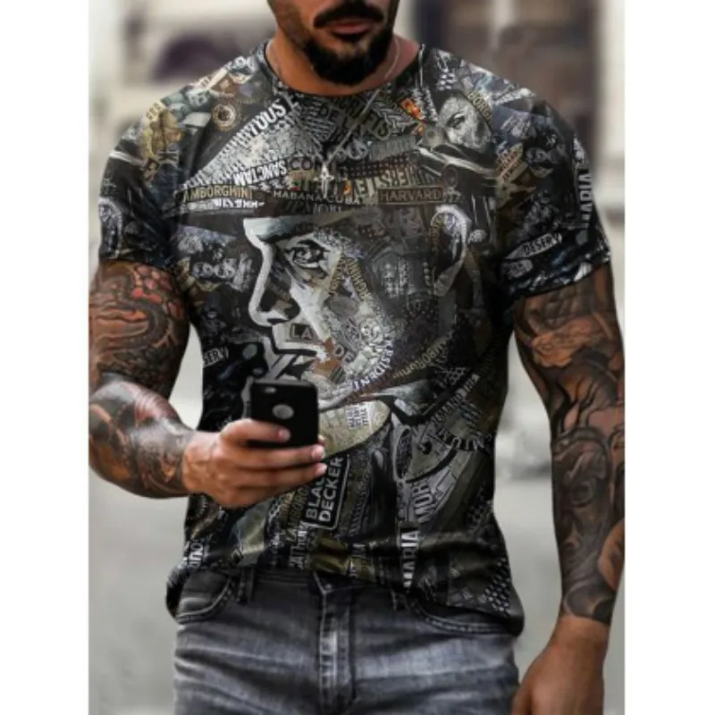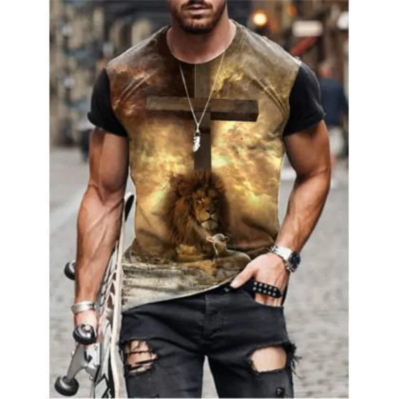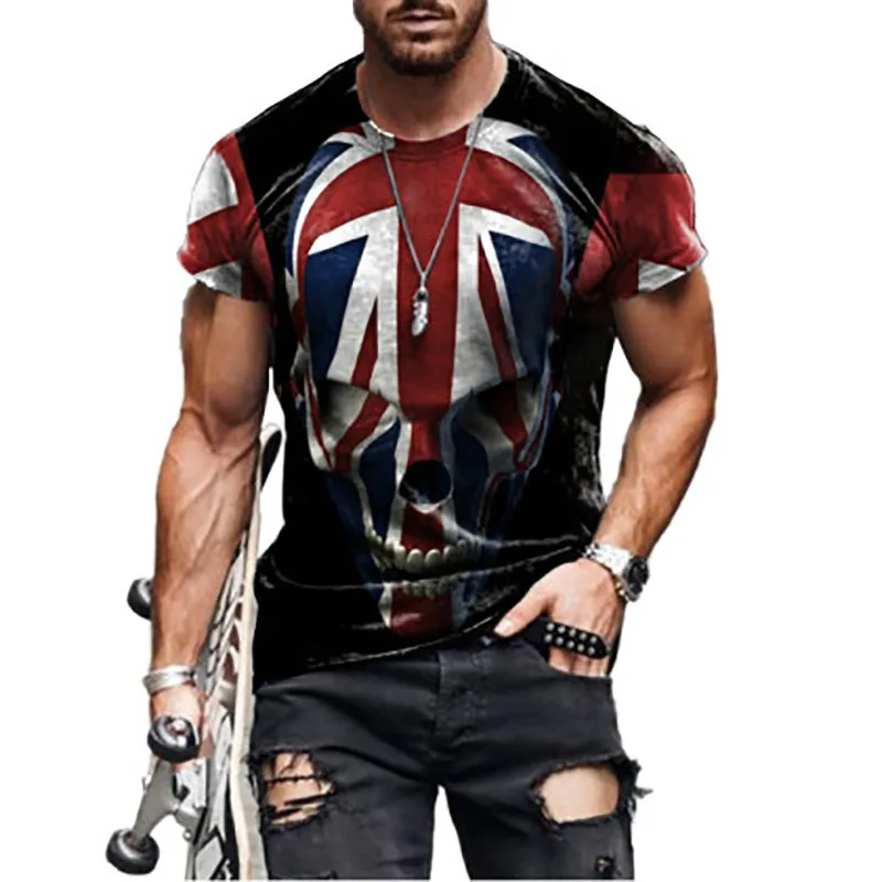 Мужская рубашка с круглым вырезом и 3D-принтом в стиле ретро, Повседневная модная футболка в уличном стиле с черепом и крестиком