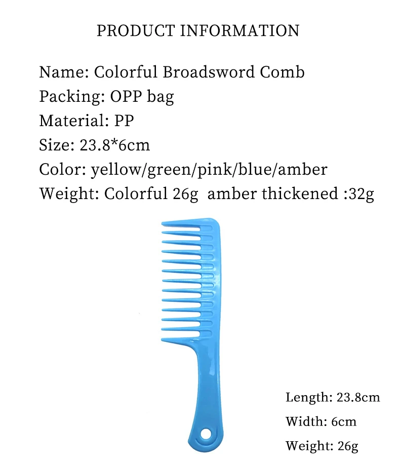 Наименование: красочная расческа Broadsword Упаковка: полипропиленовый пакет Материал: полипропилен Размер: 23. 8*6 см Цвет: желтый/зеленый/розовый/синий/янтарный Вес: разноцветный 26 г Янтарный утолщенный: 32 г