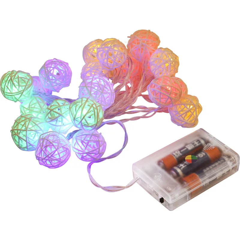 Гирлянда из 20 светодиодных ротанговых шариков, светодиодная сказоч...