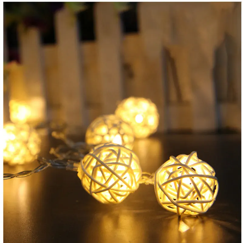 Светодиодная гирлянда с ротанговыми шариками, Рождественская гирлян...