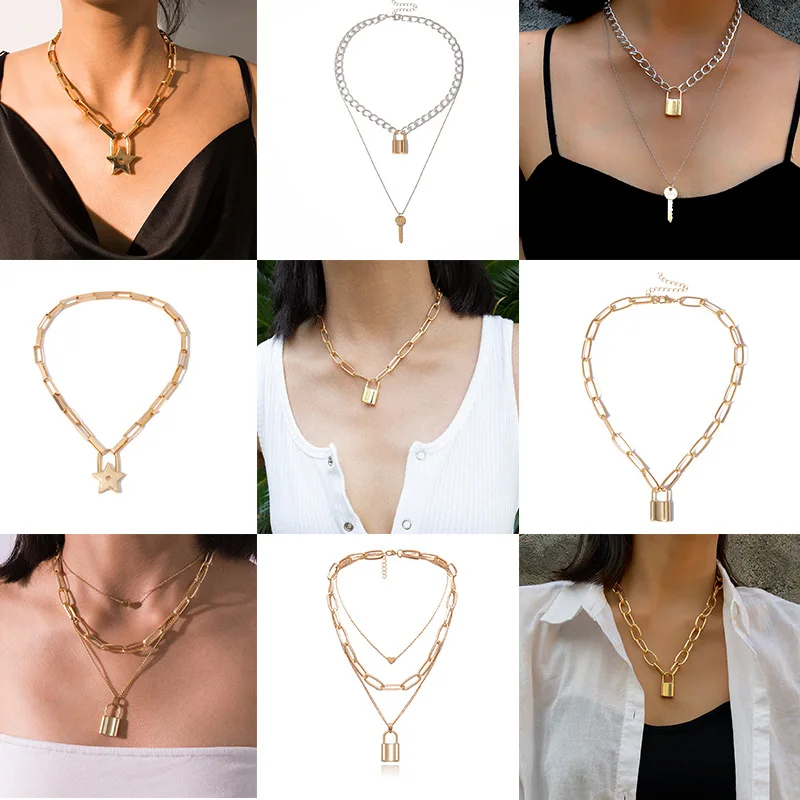 Многослойная цепочка ожерелье на шею цепочка с подвеской замок ювел...