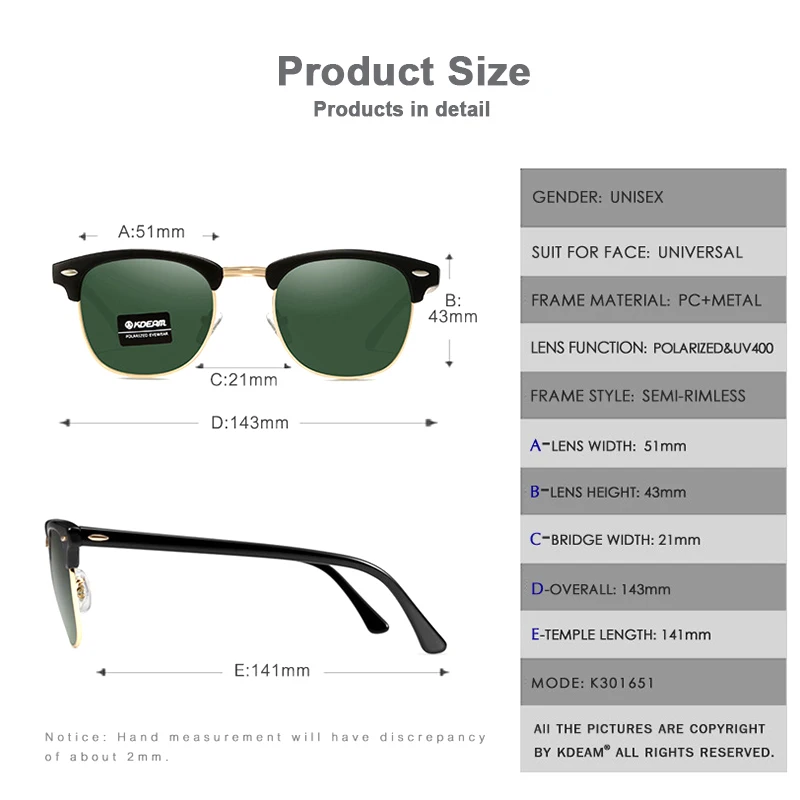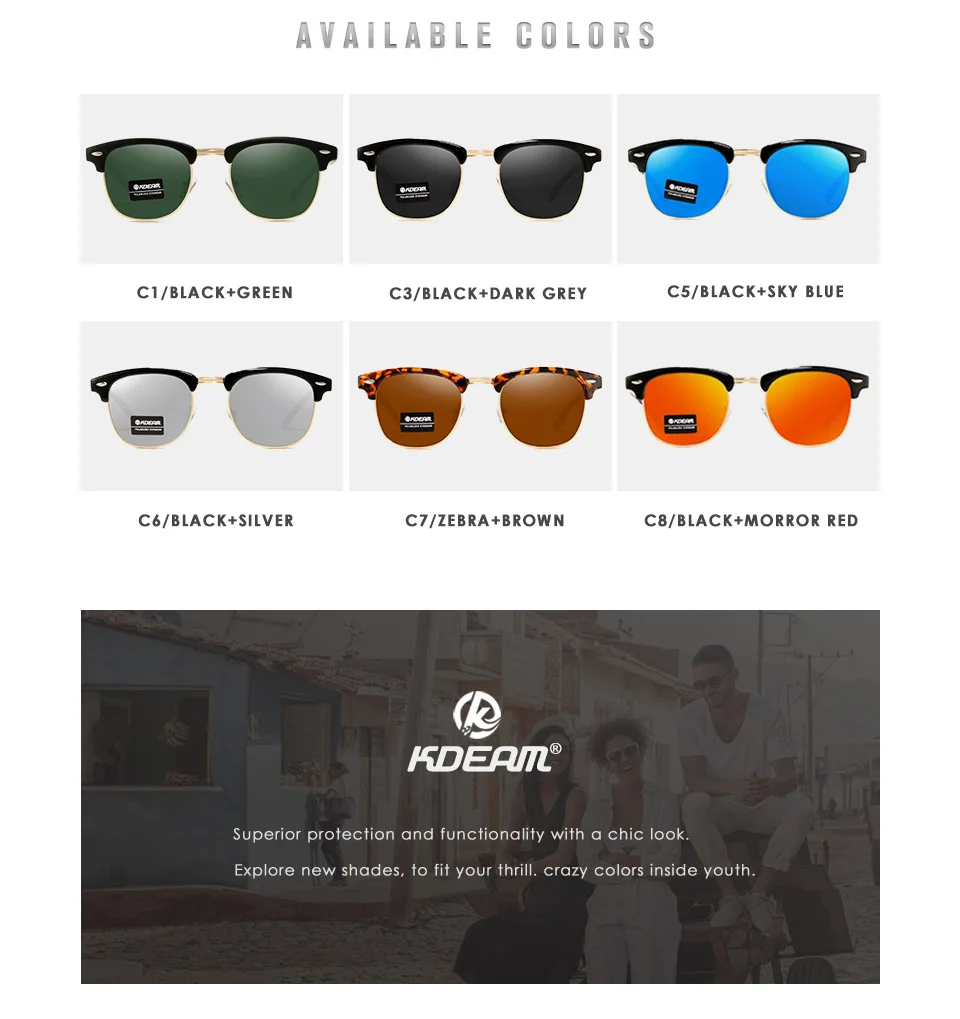 Мужские и женские очки Kdeam, поляризационные солнцезащитные очки в полуоправе, для вождения, с защитой от УФ-лучей, 100%