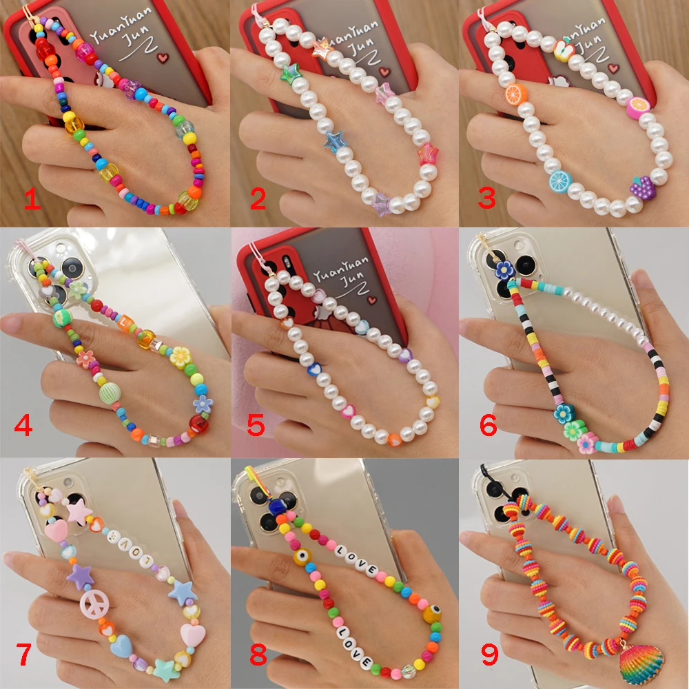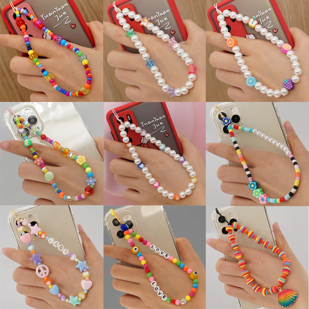 Новинка 2021, колье на мобильный телефон с жемчугом Smile Ремешок с...