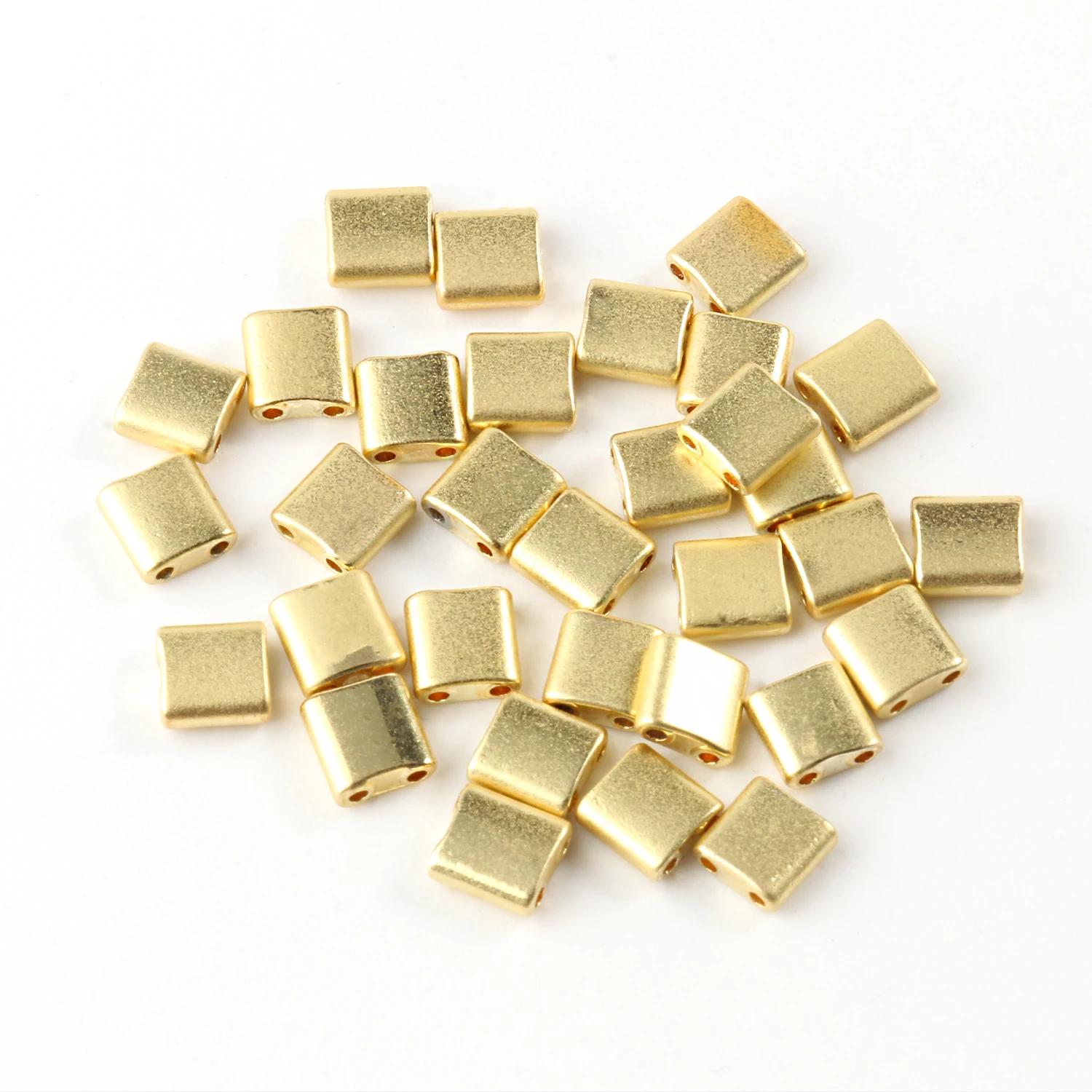 Плоские бусины из гематита с двойным отверстием, золотого/серебряного цвета, 2 мм, 5 мм, квадратные разделители свободных бусин для изготовления ювелирных изделий, браслетов, ожерелий