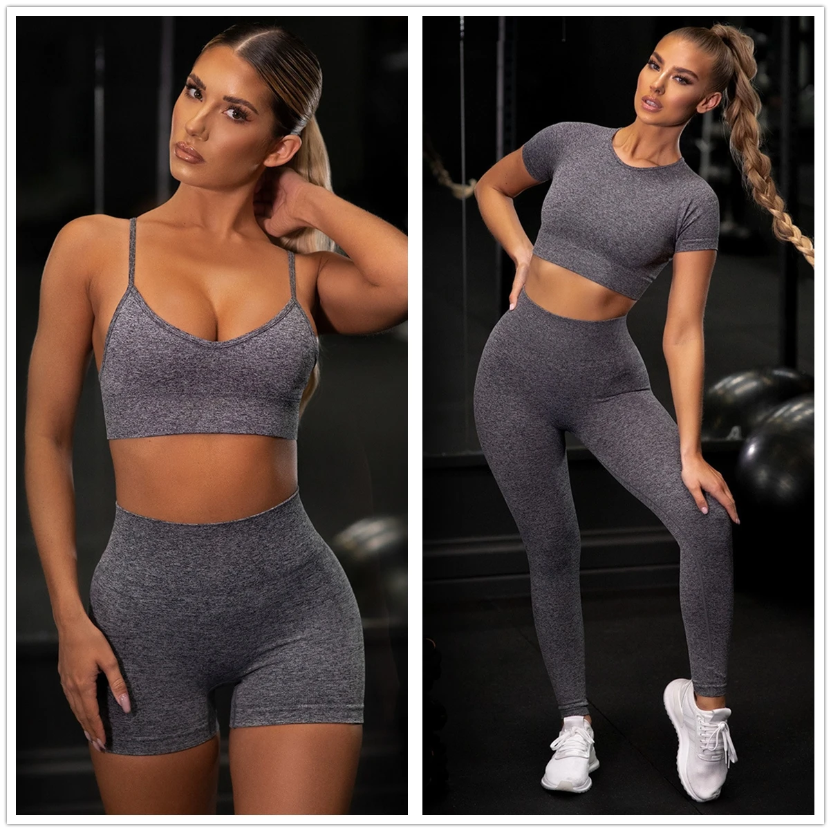 Бесшовный комплект для йоги QRWR из 2 предметов, женский спортивный...